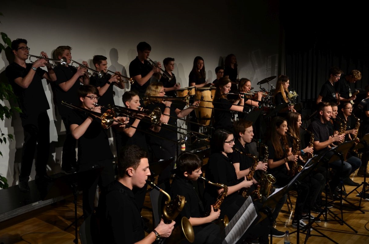 Unsere Bigband besteht aus gut 20 Schülern/-innen der Klassenstufen 8-12 und Ehemaligen. Neben den Holz- und Blechbläsern (Alt-Sax, Tenor-Sax, Bari-Sax, Trompete, Posaune, Querflöte,…) spielt auch die Rhythmusgruppe eine wesentliche Rolle (Klavier, E-Gitarre, E-Bass, E-Piano, Schlagzeug, Percussion,). Darüber hinaus haben wir immer auch Stücke für unsere Sänger/innen – sei es als Solistinnen oder als Backgroundsängerinnen.