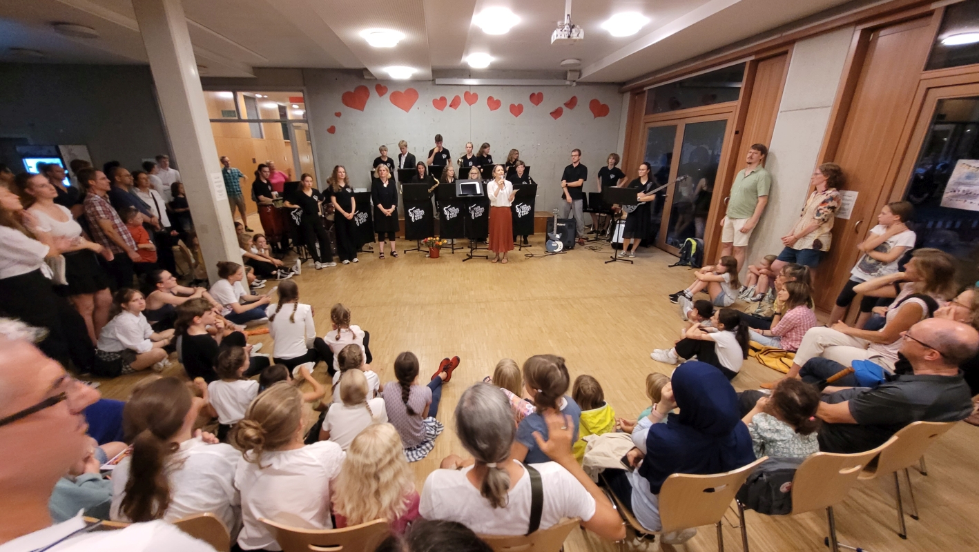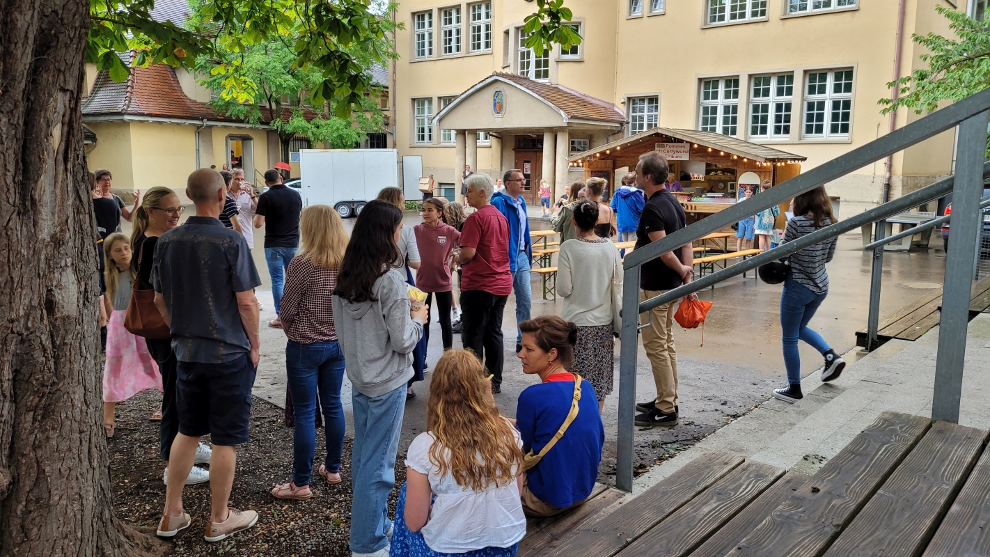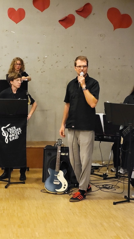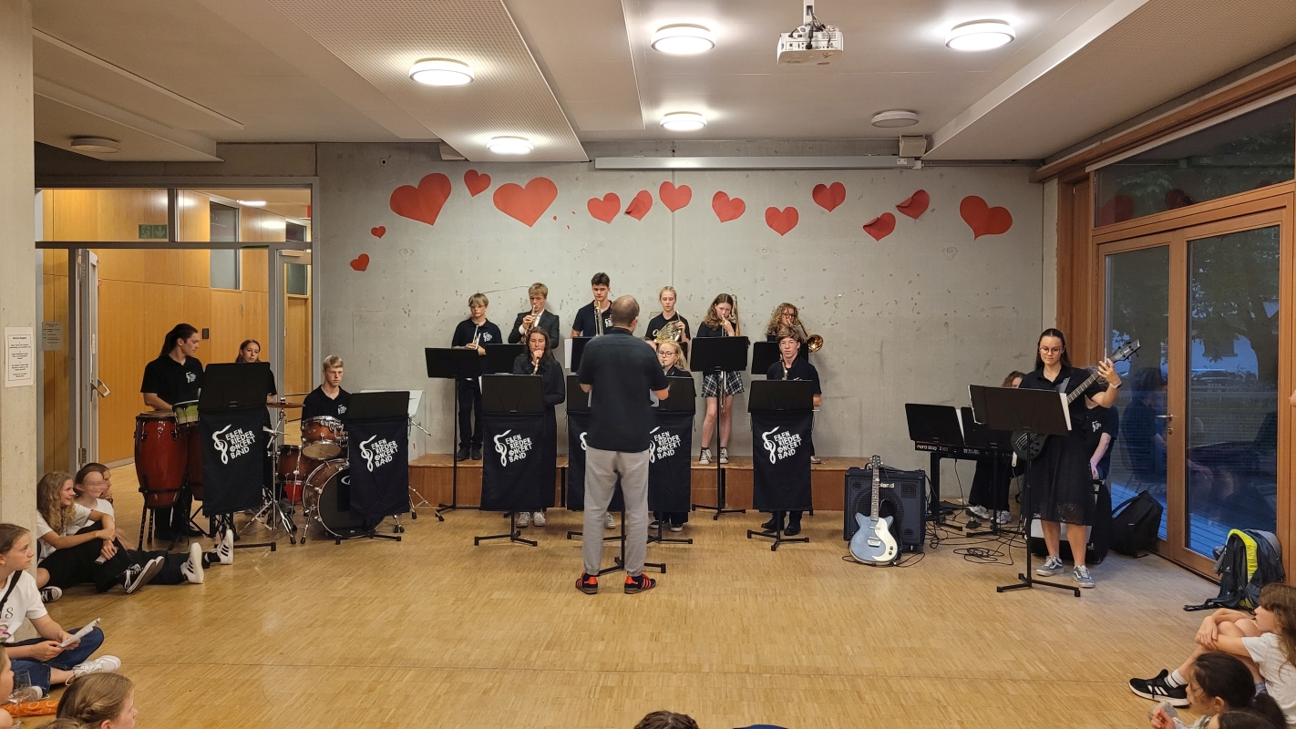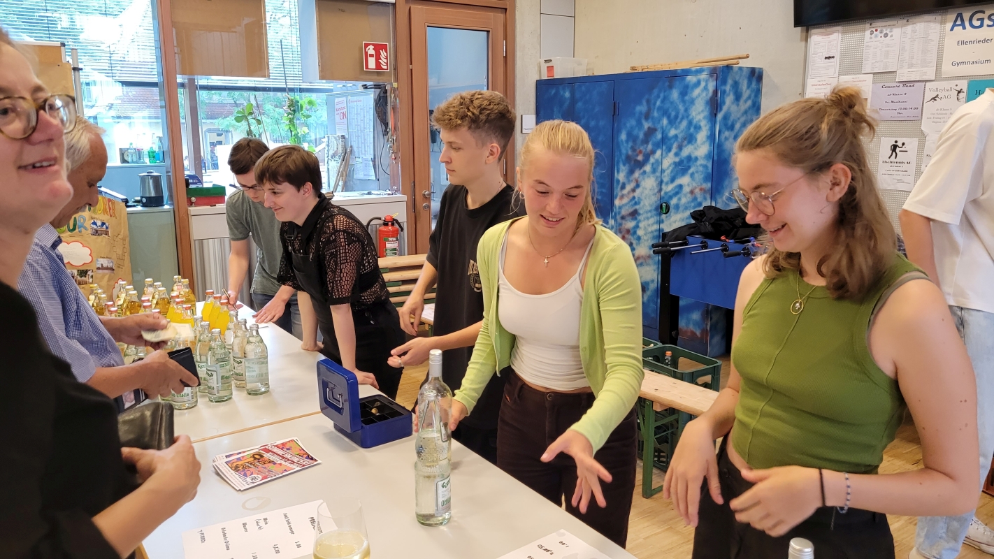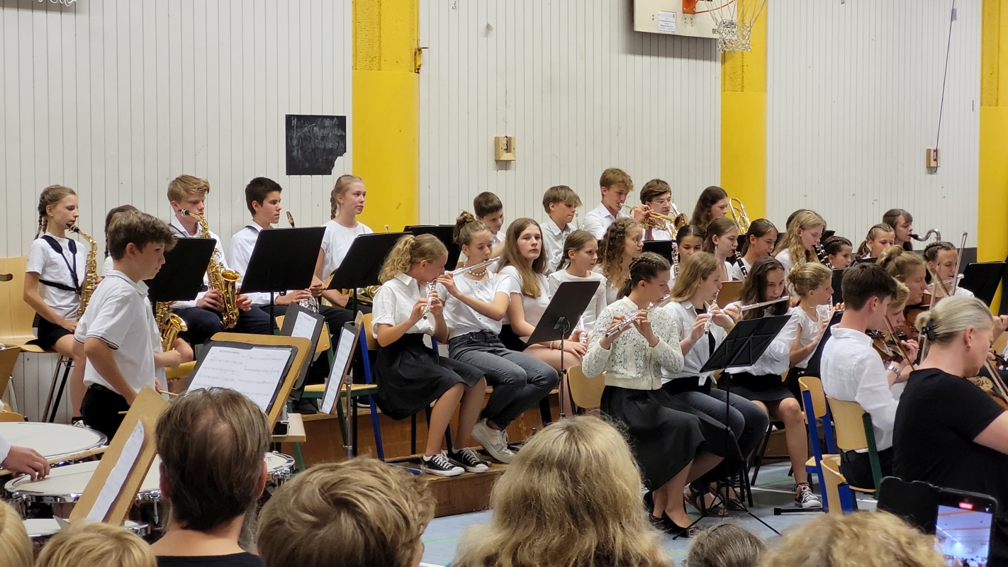 Am vergangenen Mittwoch feierte unser Sommerkonzert eine Premiere: Die Orchester, die Chöre und die Concert Band musizierten an verschiedenen Stationen im Schulhaus. Trotz regnerischer Witterung verbreitete das neue Format ein zwangloses Festivalgefühl: Zwischen den musikalischen Programmpunkten, die mit gewohnter Präzision und Hingabe von Julia Müller, Heiko Sehrig und Diana Winterer einstudiert worden waren, gab es im Rahmen der Ortswechsel Gelegenheit zu Verköstigung und Plausch. Die Abiturient:innen schenkten Getränke aus und auf dem Schulhof traf man sich zu Currywurst und Pommes. So besiedelten Schüler:innen, Eltern und Lehrer:innen das Schulhaus und genossen einen Abend, bei dem neben den musikalischen Fähigkeiten unserer Schüler:innen auch die Schulgemeinschaft am Ellenrieder erlebbar wurde.