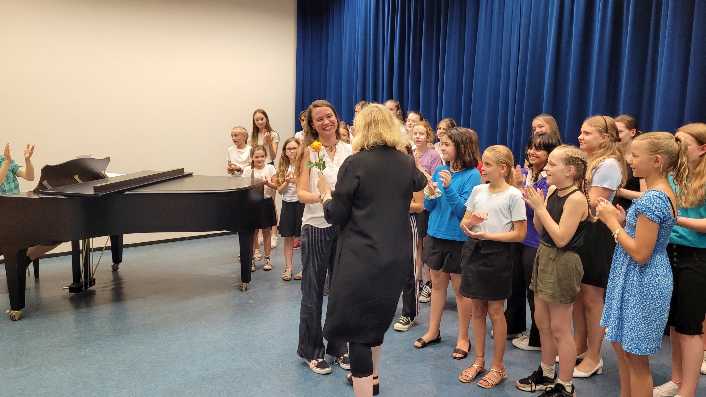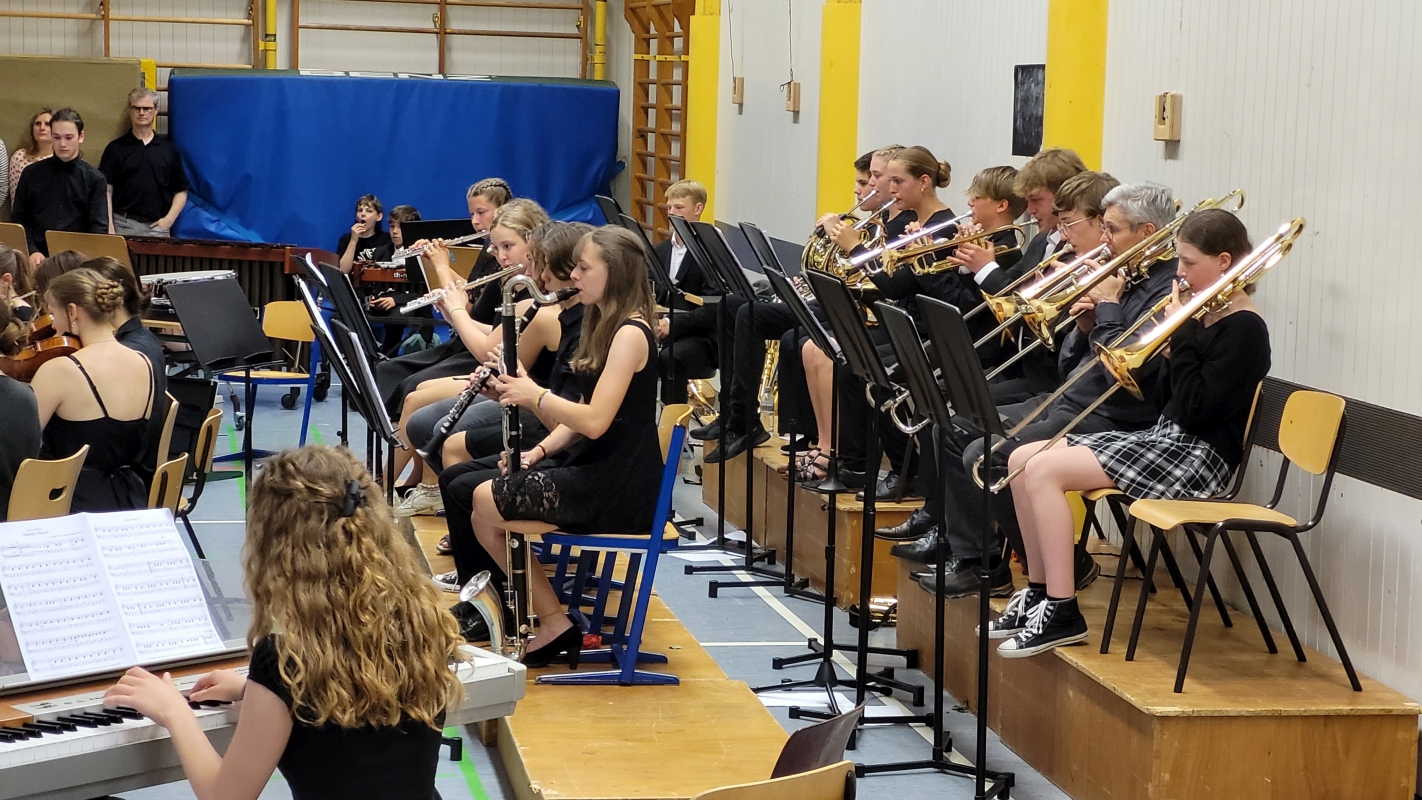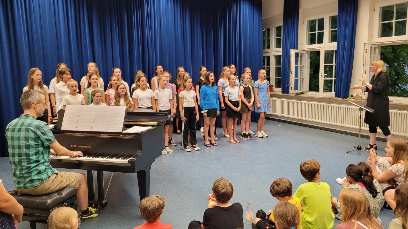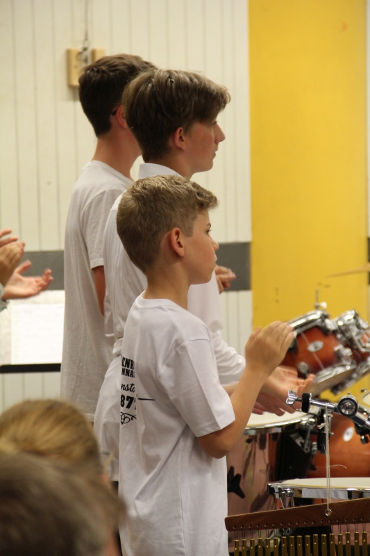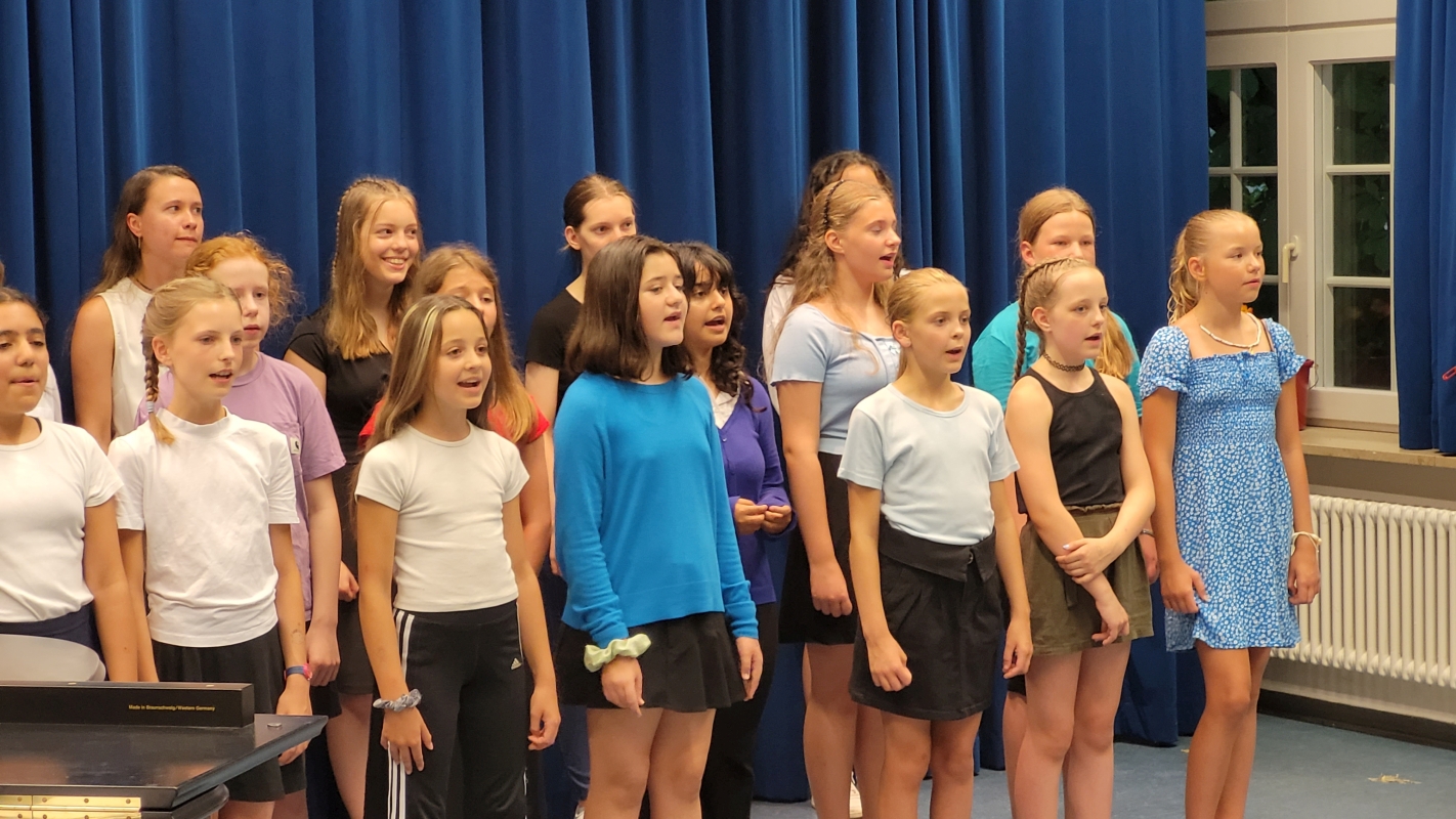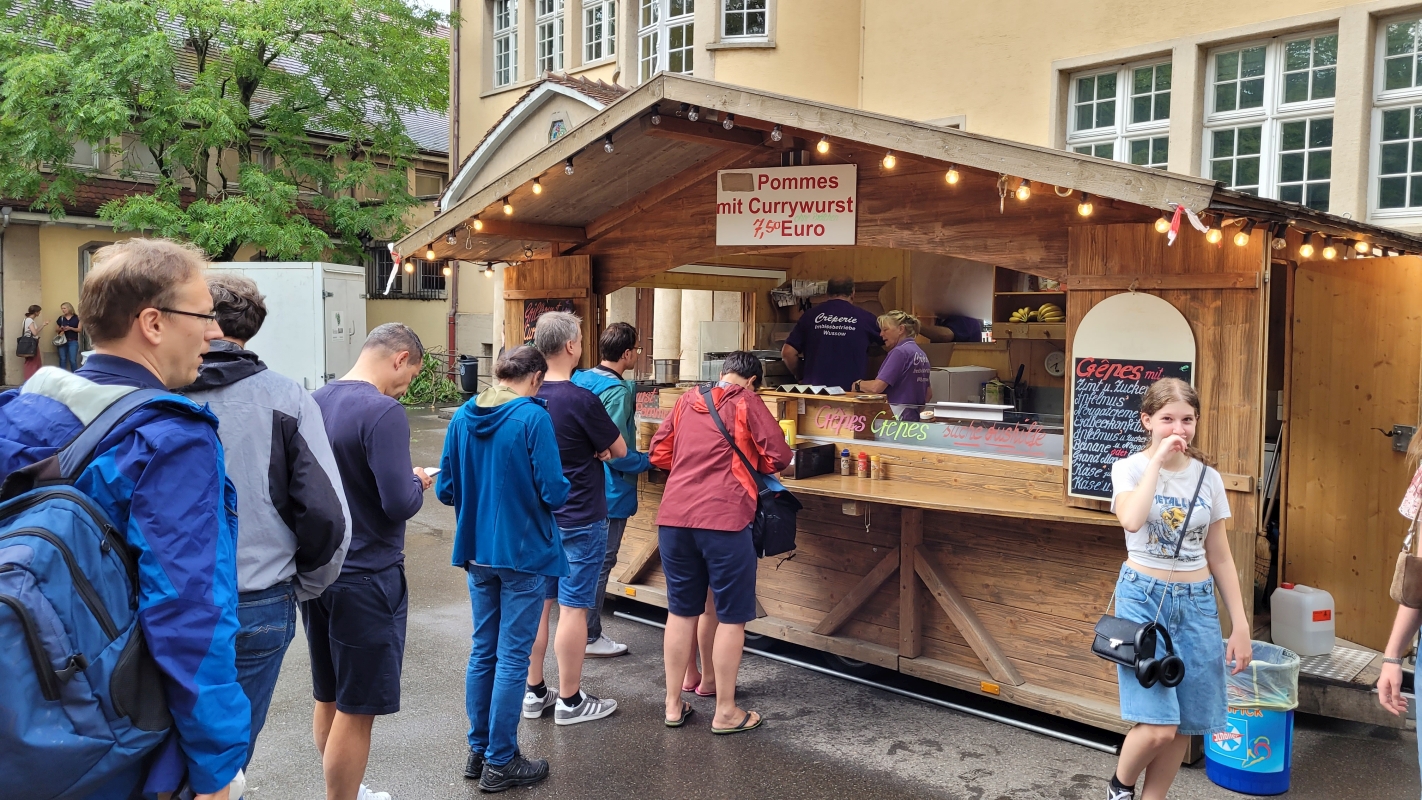 Am vergangenen Mittwoch feierte unser Sommerkonzert eine Premiere: Die Orchester, die Chöre und die Concert Band musizierten an verschiedenen Stationen im Schulhaus. Trotz regnerischer Witterung verbreitete das neue Format ein zwangloses Festivalgefühl: Zwischen den musikalischen Programmpunkten, die mit gewohnter Präzision und Hingabe von Julia Müller, Heiko Sehrig und Diana Winterer einstudiert worden waren, gab es im Rahmen der Ortswechsel Gelegenheit zu Verköstigung und Plausch. Die Abiturient:innen schenkten Getränke aus und auf dem Schulhof traf man sich zu Currywurst und Pommes. So besiedelten Schüler:innen, Eltern und Lehrer:innen das Schulhaus und genossen einen Abend, bei dem neben den musikalischen Fähigkeiten unserer Schüler:innen auch die Schulgemeinschaft am Ellenrieder erlebbar wurde.