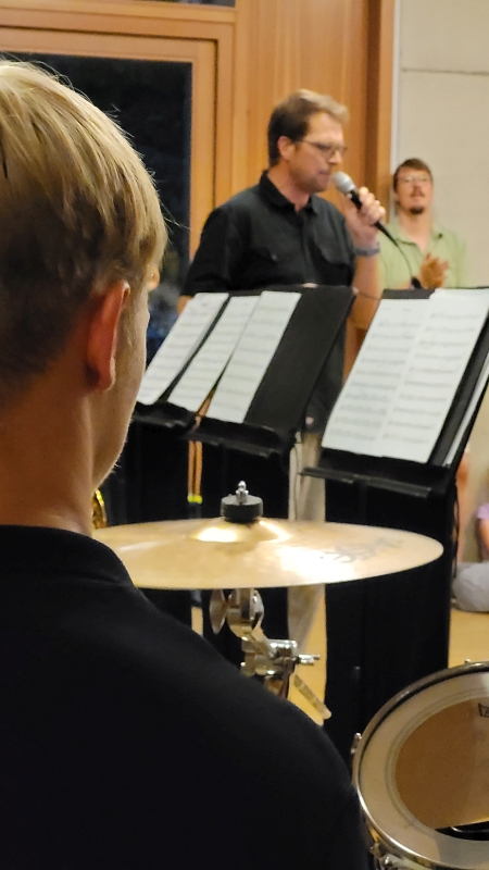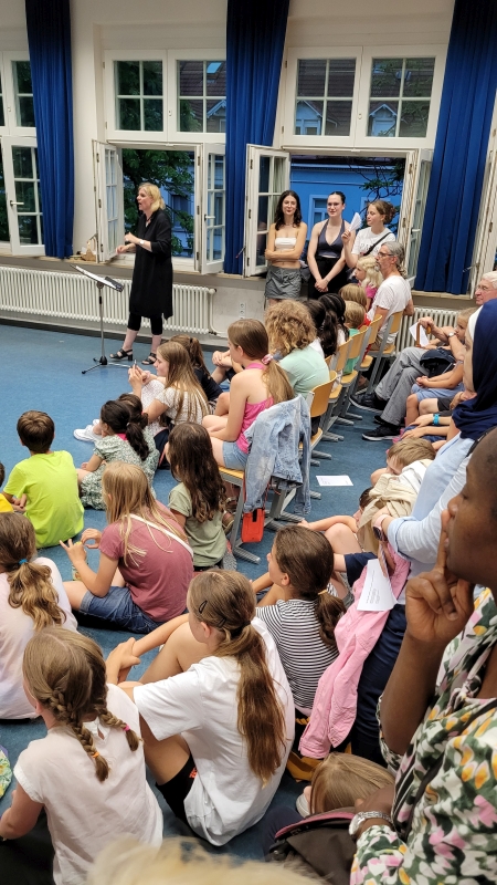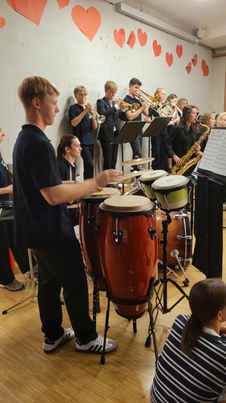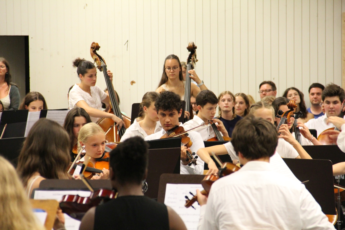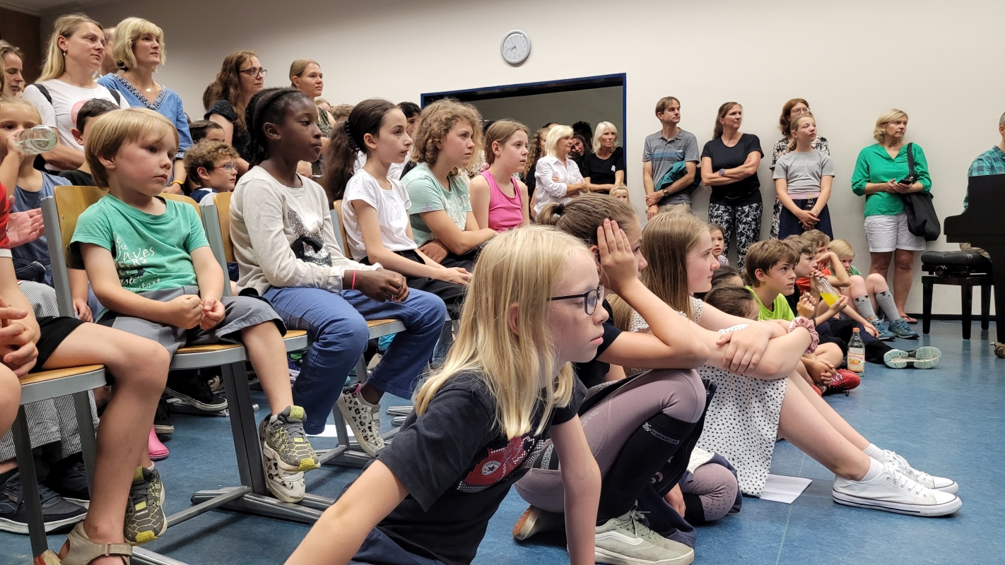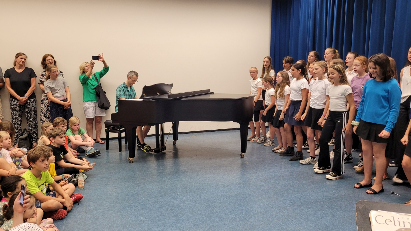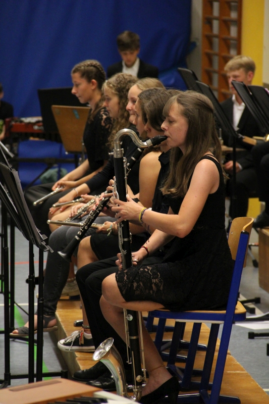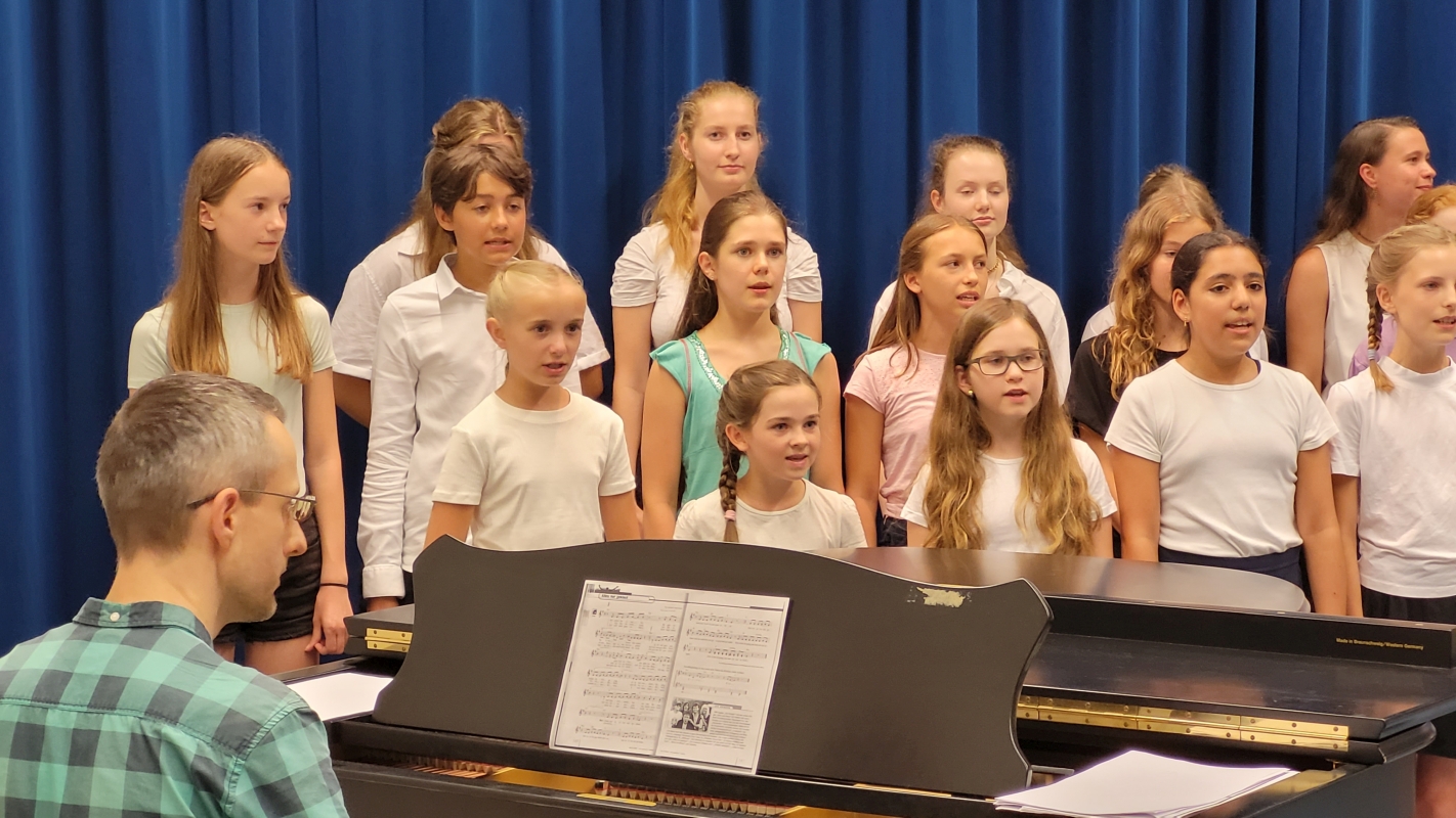 Am vergangenen Mittwoch feierte unser Sommerkonzert eine Premiere: Die Orchester, die Chöre und die Concert Band musizierten an verschiedenen Stationen im Schulhaus. Trotz regnerischer Witterung verbreitete das neue Format ein zwangloses Festivalgefühl: Zwischen den musikalischen Programmpunkten, die mit gewohnter Präzision und Hingabe von Julia Müller, Heiko Sehrig und Diana Winterer einstudiert worden waren, gab es im Rahmen der Ortswechsel Gelegenheit zu Verköstigung und Plausch. Die Abiturient:innen schenkten Getränke aus und auf dem Schulhof traf man sich zu Currywurst und Pommes. So besiedelten Schüler:innen, Eltern und Lehrer:innen das Schulhaus und genossen einen Abend, bei dem neben den musikalischen Fähigkeiten unserer Schüler:innen auch die Schulgemeinschaft am Ellenrieder erlebbar wurde.