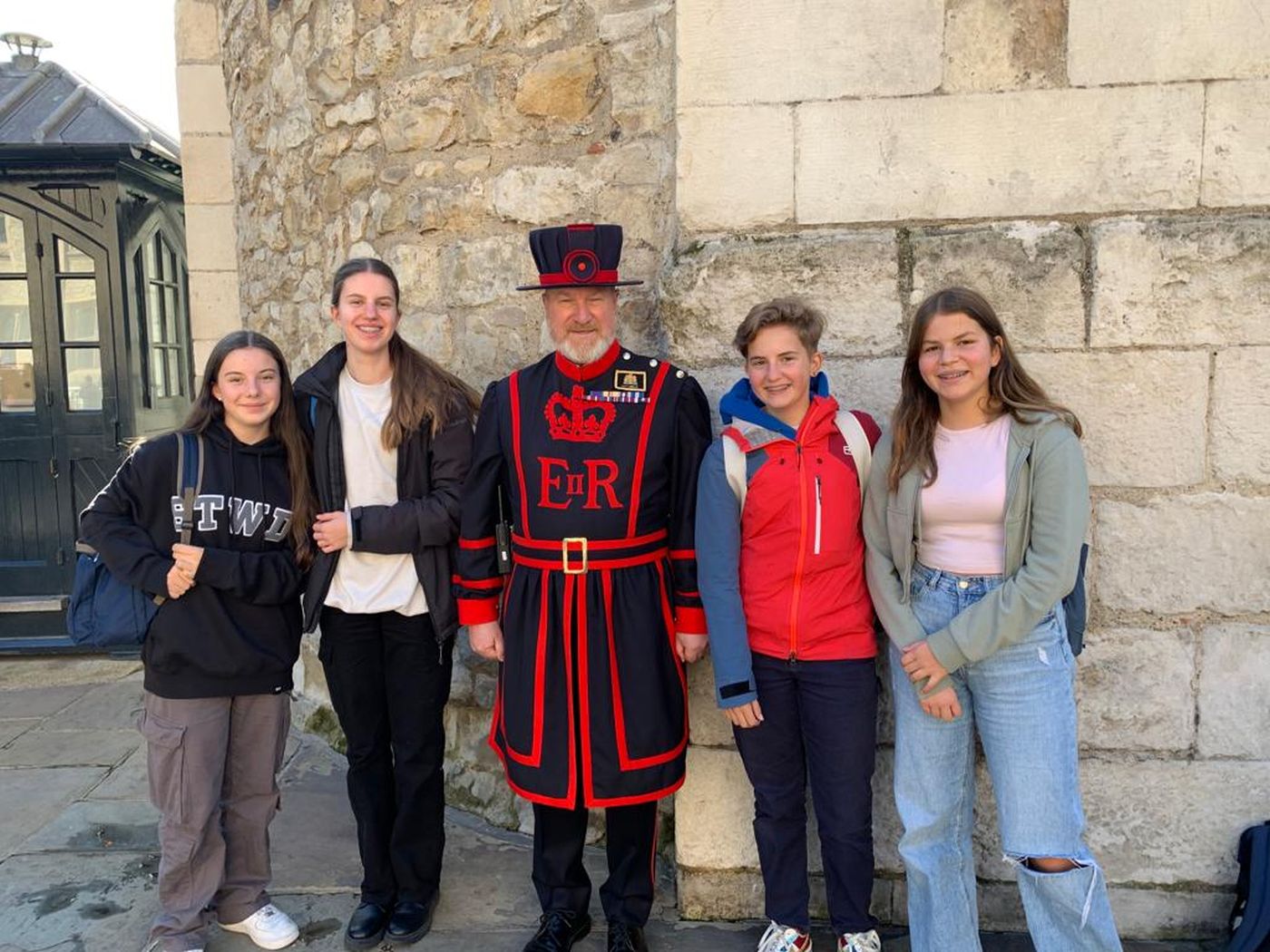 Nach zweijähriger coronabedingter Pause fand in der vergangenen Woche unser traditionsreicher Englandaustausch endlich wieder statt! 43 Schüler:innen der Klassen 9 und 10 und vier Begleitpersonen hatten sich auf den Weg nach Richmond gemacht, um dort den englischen Familienalltag hautnah zu erleben und insbesondere die Landeshauptstadt London zu erkunden. Museen und Sightseeing standen dabei ebenso auf dem Programm wie ein Besuch des Tower of London, des Hampton Court Palace und des Musicals "& Juliet".