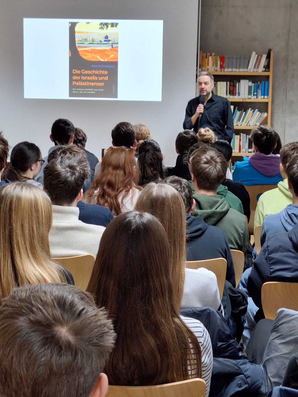 Am Mittwoch dem 22.1.2025 las der renommierte Autor Martin Schäuble den 10. Klassen aus seinem Sachbuch "Die Geschichte der Israelis und Palästinenser-Der Nahostkonflikt aus Sicht derer, die ihn erleben" vor und wir bekamen so einen tieferen Einblick in die Geschichte dieser Region.