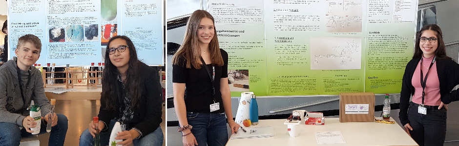 Links: Mikroplastik überall – Laurenz Grad und Frida Kniebs-Gomez haben genauer hingeschaut, wo es überall vorkommt. Rechts: It is Teatime! Aber nicht mit bitterem Tee, dank der Maschine von Dominique Herrmann und Sara Lamparth Romero. Es gab dafür eine Top 3 Platzierung.