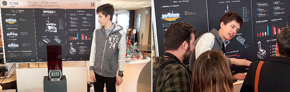 3-Drucken und das schneller als die gängigen Drucker am Markt. Tobias Neidhart baut einen Drucker komplett selbst, überflügelt sich und die Konkurrenz und gewinnt – das zweite Jahr in Folge – den Wettbewerb in der Kategorie Technik!
