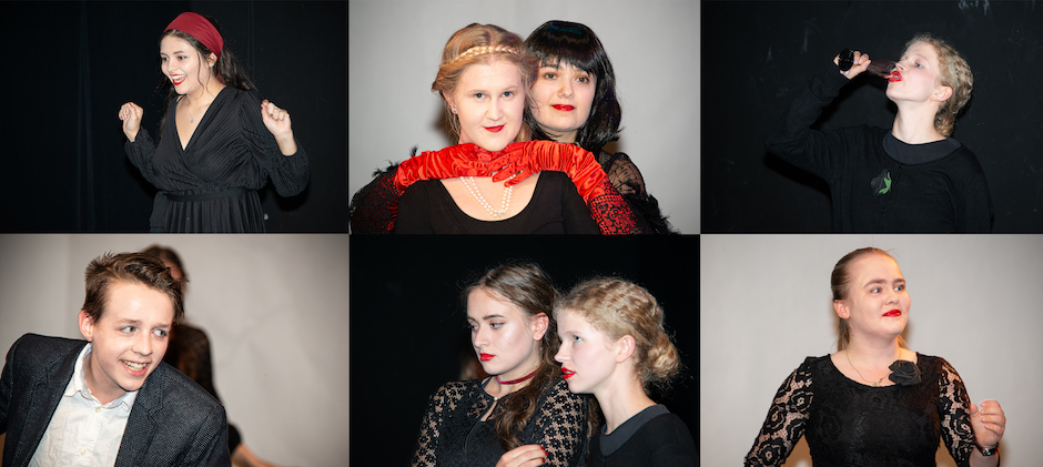 Die SchauspielerInnen der Theater-AG der Mittel- und Oberstufe spielten zwei beeindruckende Aufführungen ihres selbst erarbeiteten Stückes "Im Licht der Schatten", einem Krimi im Berlin der Endzwanziger. Das Publikum in der ausverkauften Werkstatt des Stadttheaters dankte es mit langanhaltendem Applaus.