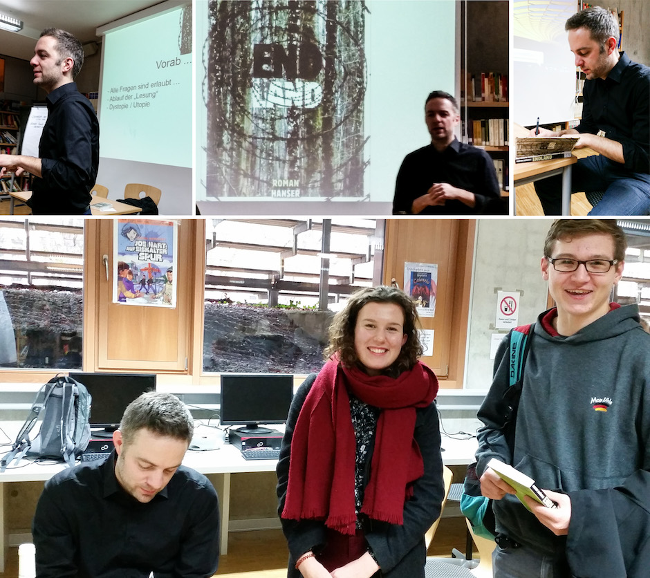 Unter langanhaltendem Beifall verabschiedete sich der Autor, signierte zuvor jedoch noch die mitgebrachten „Endland“-Exemplare der Schülerinnen und Schüler.