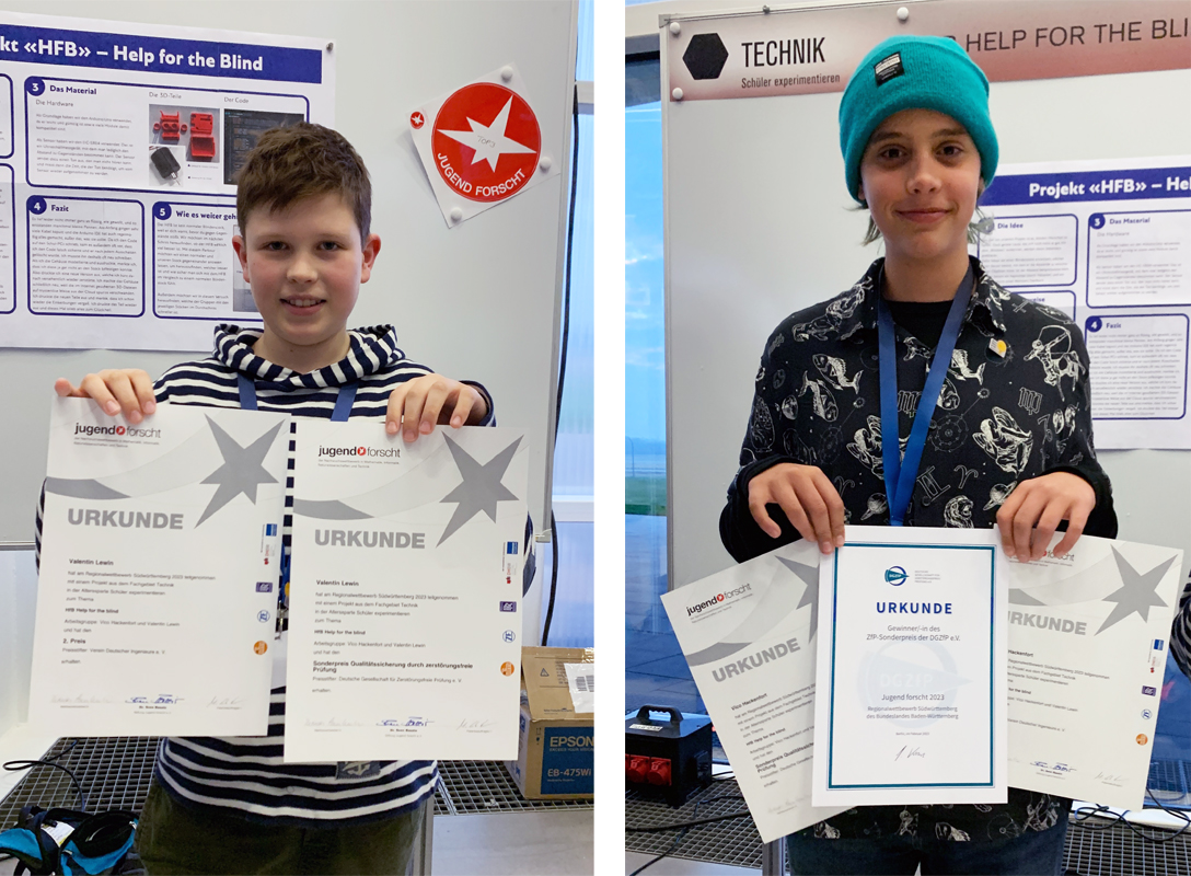 Die Jury war von der Arbeit der beiden Forscher so überzeugt, dass sie mit dem zweiten Platz im Bereich Technik und zusätzlich mit dem ZFP Sonderpreis der DGZfP e.V. ausgezeichnet wurden.
