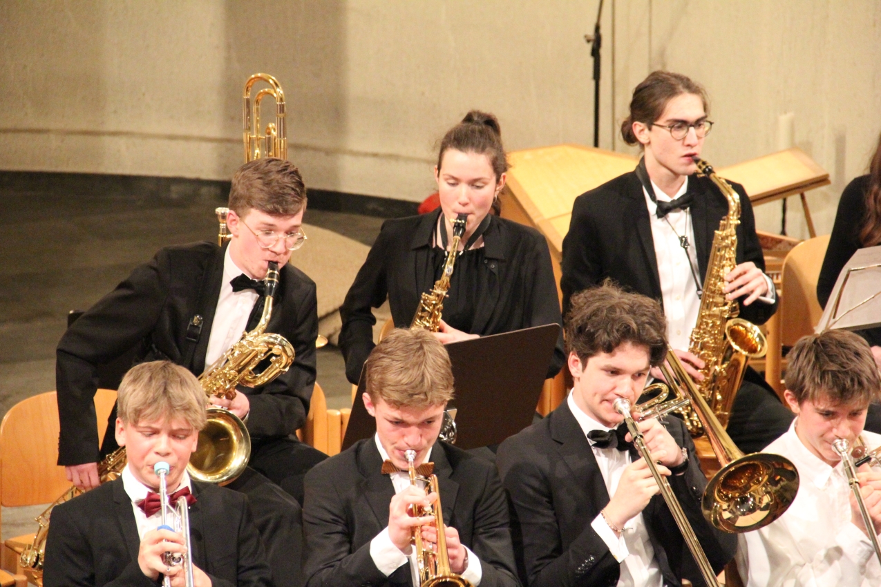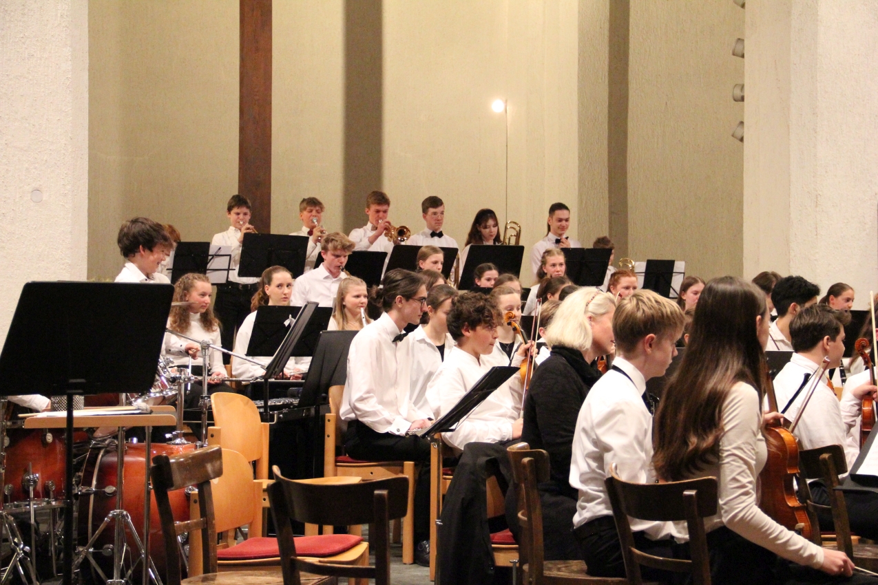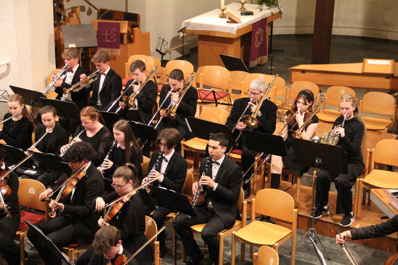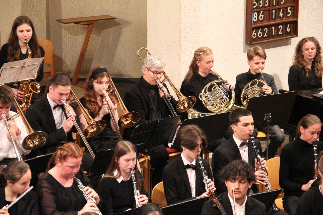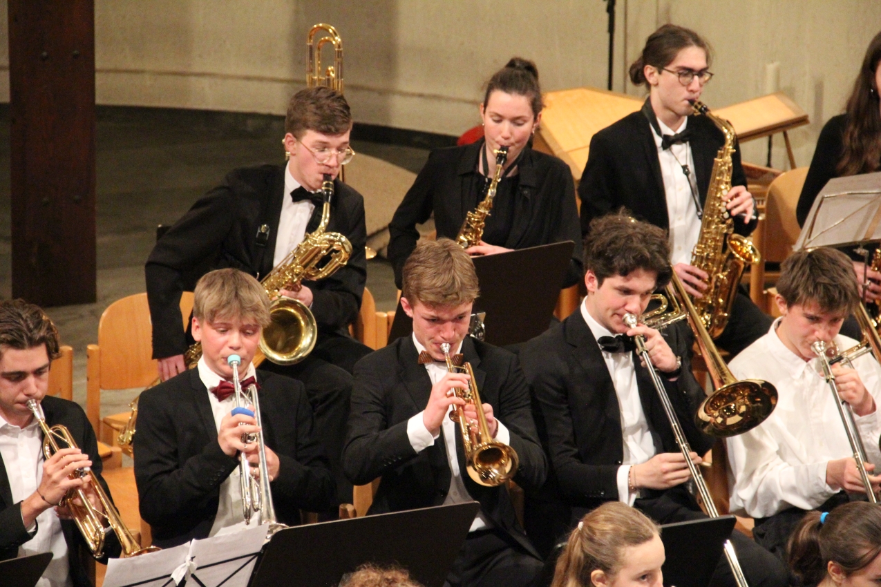 Wieder einmal begeisterten unsere Schüler:innen am vergangenen Donnerstag mit einem abwechslungsreichen Programm in der Lutherkirche. Von klassischen Stücken über Musical bis Filmmusik war für jeden Geschmack etwas dabei. Vor allem seien an dieser Stelle unsere angehenden Abiturient:innen erwähnt, die ihr Können solistisch dargeboten haben: Luca Oehlmann, Hannah Lehmann, Philipp Kleiner, Hannah Eden und Laurenz Ruchti demonstrierten ihr Talent an ihren Instrumenten und versetzten das Publikum in tosenden Beifall. Franz Dach betätigte sich außerdem als Arrangeur des Stücks "Tokyo Tune Fanfare" und sorgte für begeisterten Beifall.