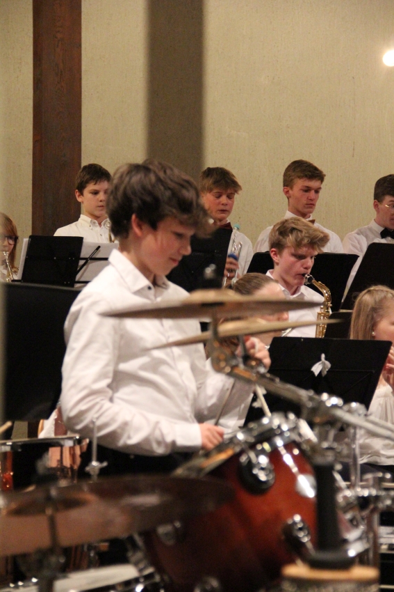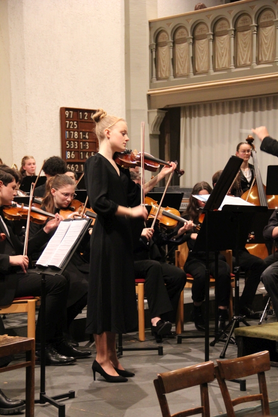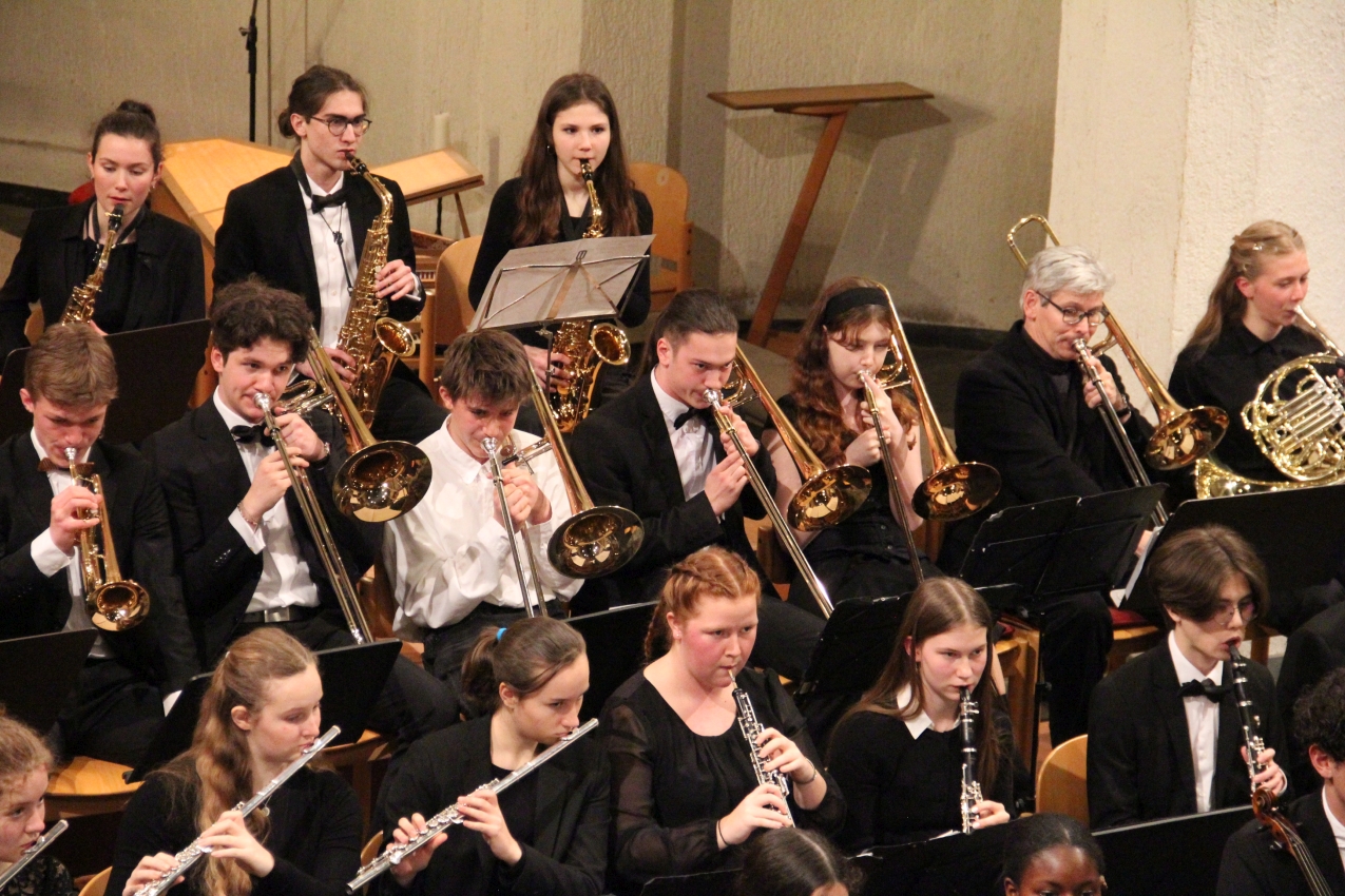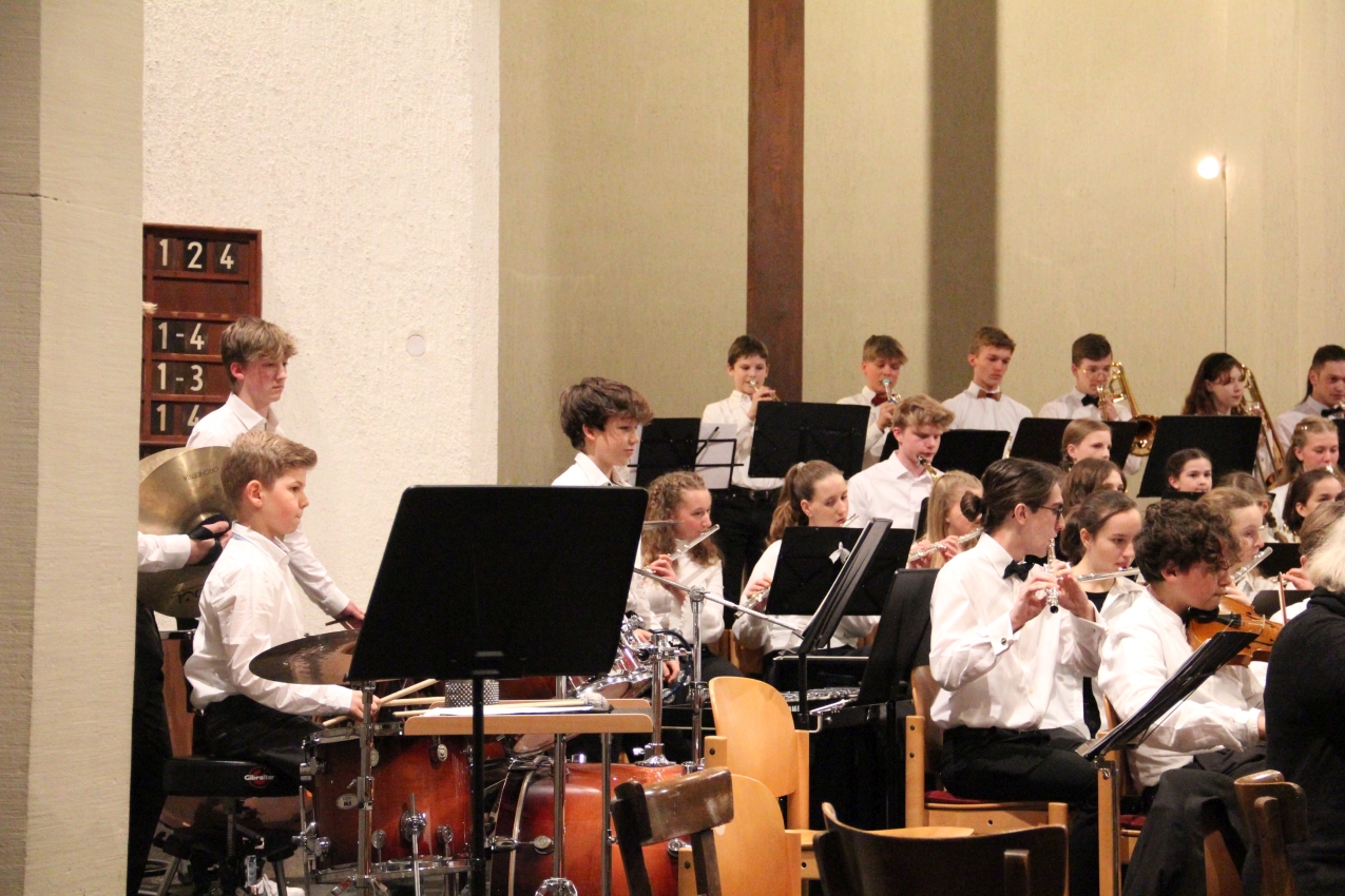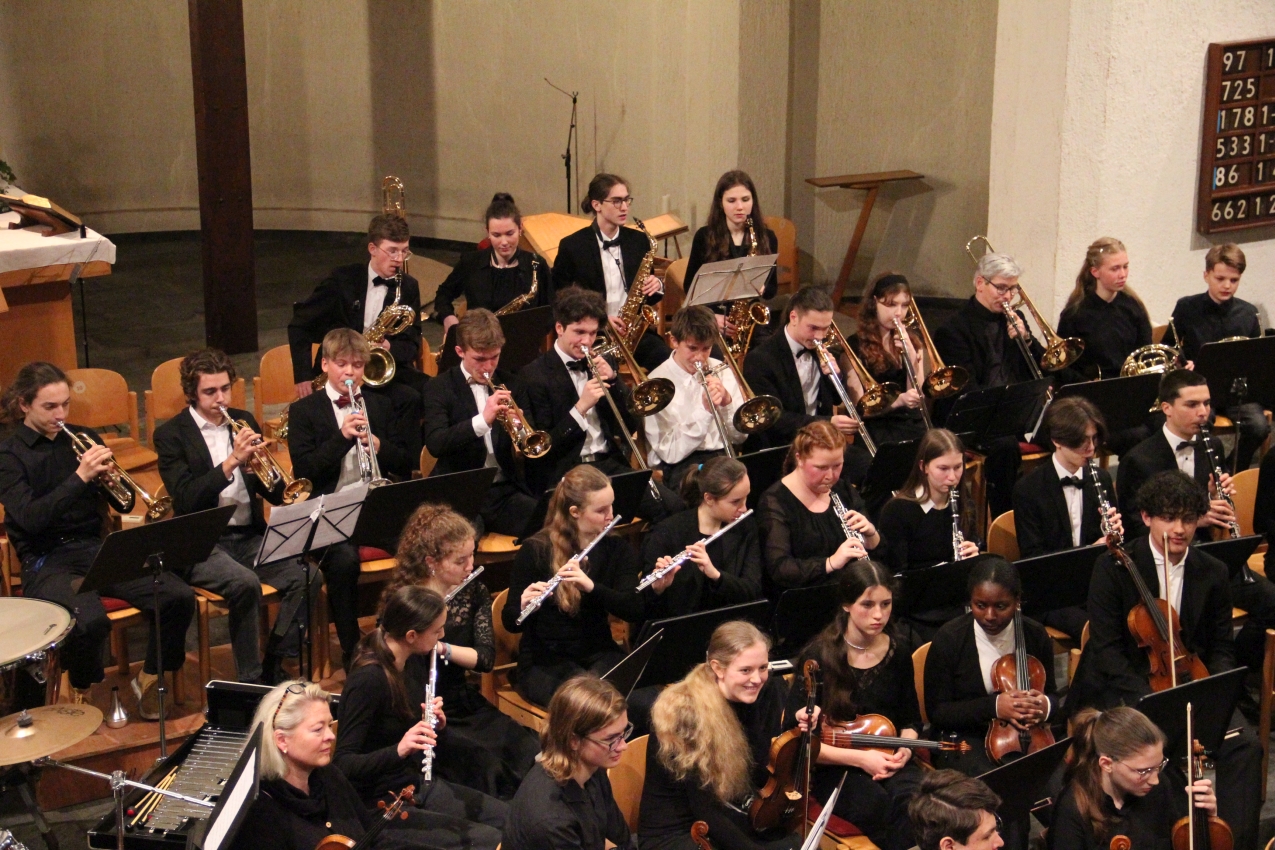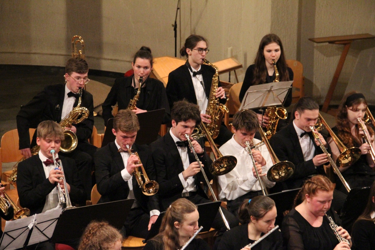 Wieder einmal begeisterten unsere Schüler:innen am vergangenen Donnerstag mit einem abwechslungsreichen Programm in der Lutherkirche. Von klassischen Stücken über Musical bis Filmmusik war für jeden Geschmack etwas dabei. Vor allem seien an dieser Stelle unsere angehenden Abiturient:innen erwähnt, die ihr Können solistisch dargeboten haben: Luca Oehlmann, Hannah Lehmann, Philipp Kleiner, Hannah Eden und Laurenz Ruchti demonstrierten ihr Talent an ihren Instrumenten und versetzten das Publikum in tosenden Beifall. Franz Dach betätigte sich außerdem als Arrangeur des Stücks "Tokyo Tune Fanfare" und sorgte für begeisterten Beifall.