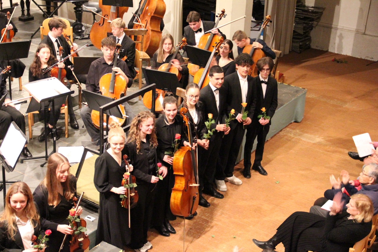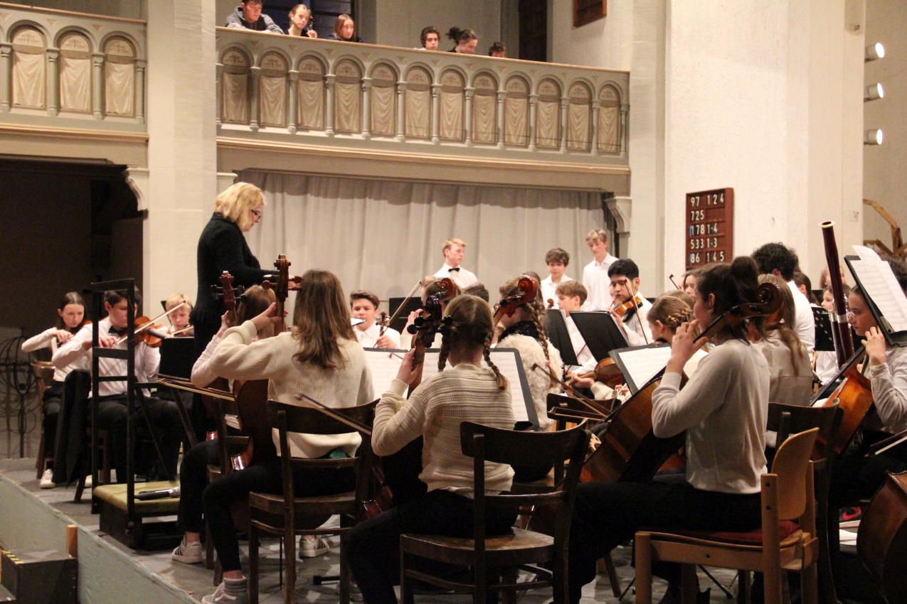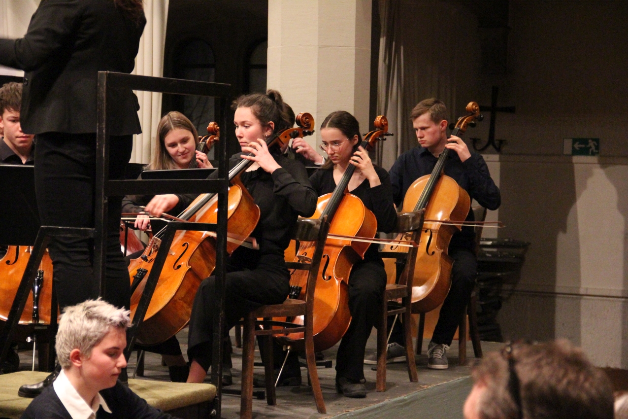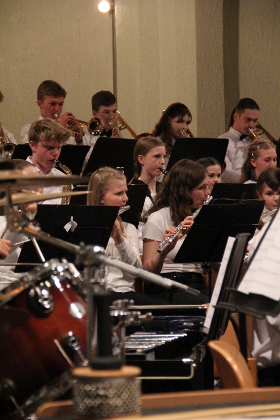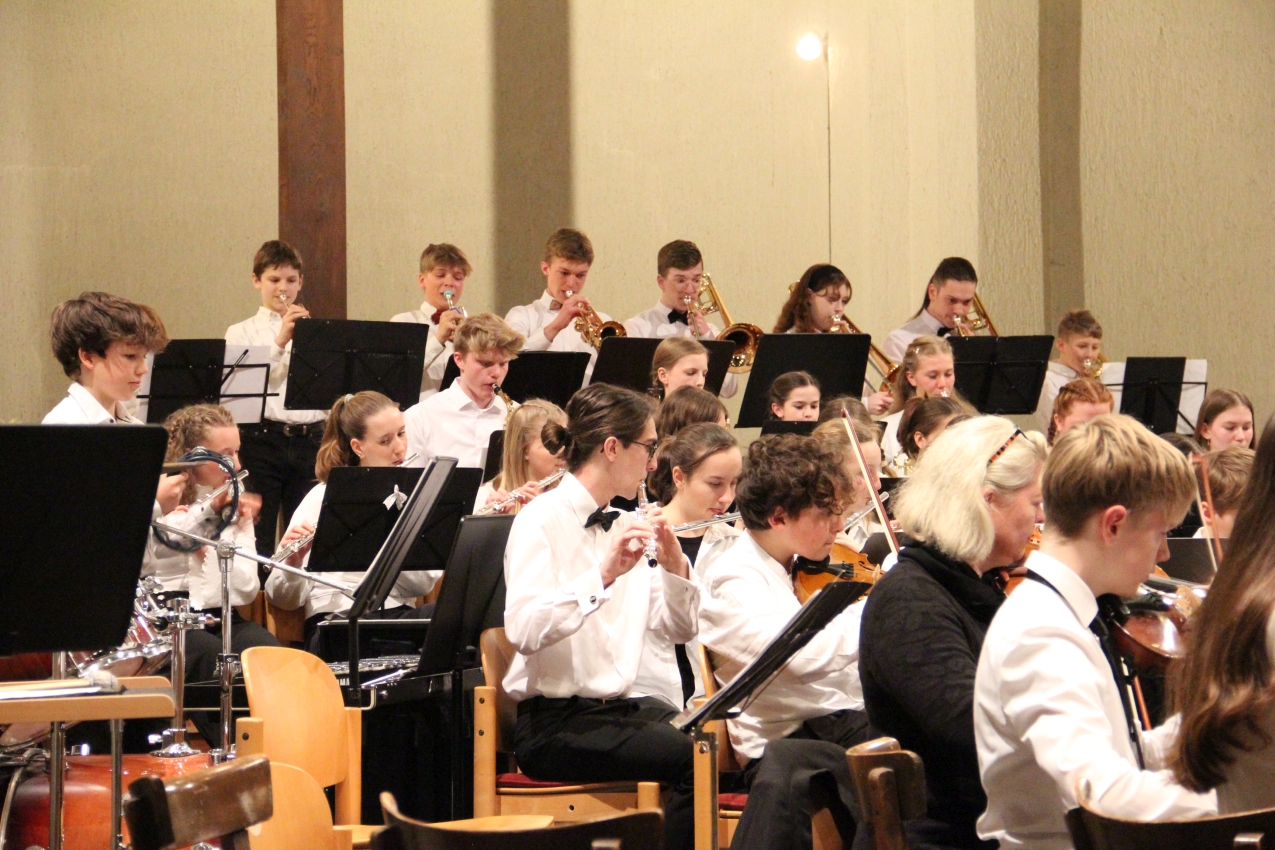 Wieder einmal begeisterten unsere Schüler:innen am vergangenen Donnerstag mit einem abwechslungsreichen Programm in der Lutherkirche. Von klassischen Stücken über Musical bis Filmmusik war für jeden Geschmack etwas dabei. Vor allem seien an dieser Stelle unsere angehenden Abiturient:innen erwähnt, die ihr Können solistisch dargeboten haben: Luca Oehlmann, Hannah Lehmann, Philipp Kleiner, Hannah Eden und Laurenz Ruchti demonstrierten ihr Talent an ihren Instrumenten und versetzten das Publikum in tosenden Beifall. Franz Dach betätigte sich außerdem als Arrangeur des Stücks "Tokyo Tune Fanfare" und sorgte für begeisterten Beifall.