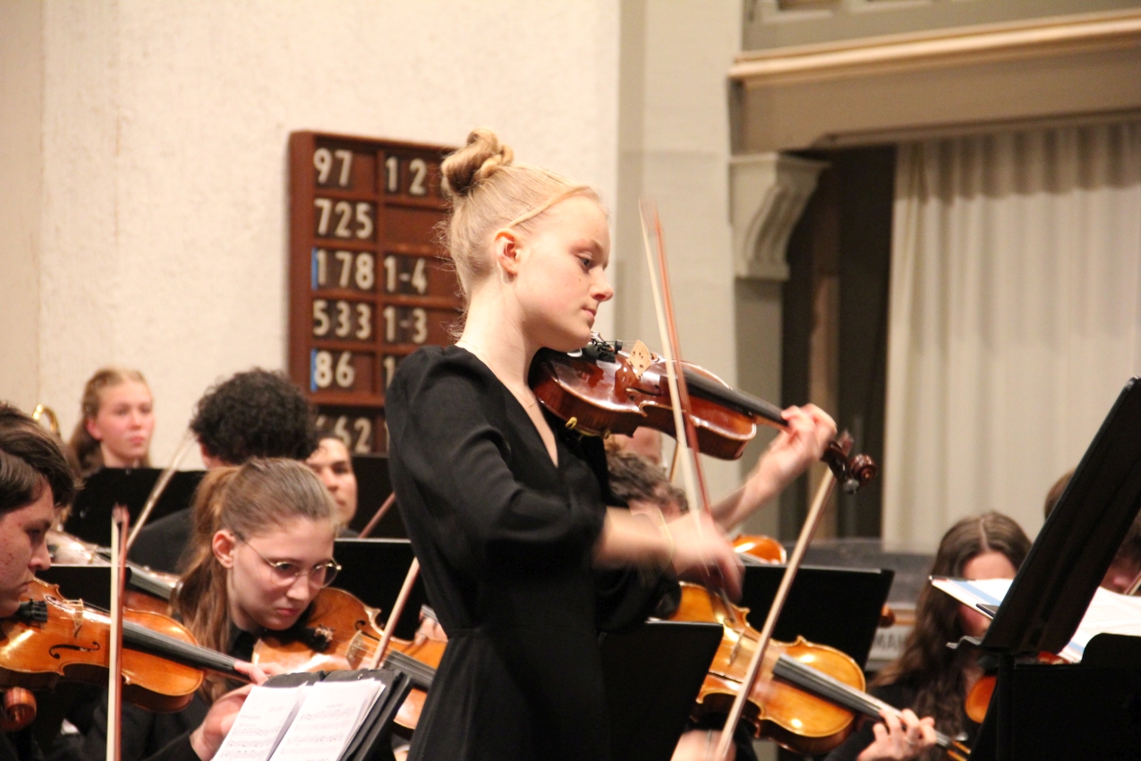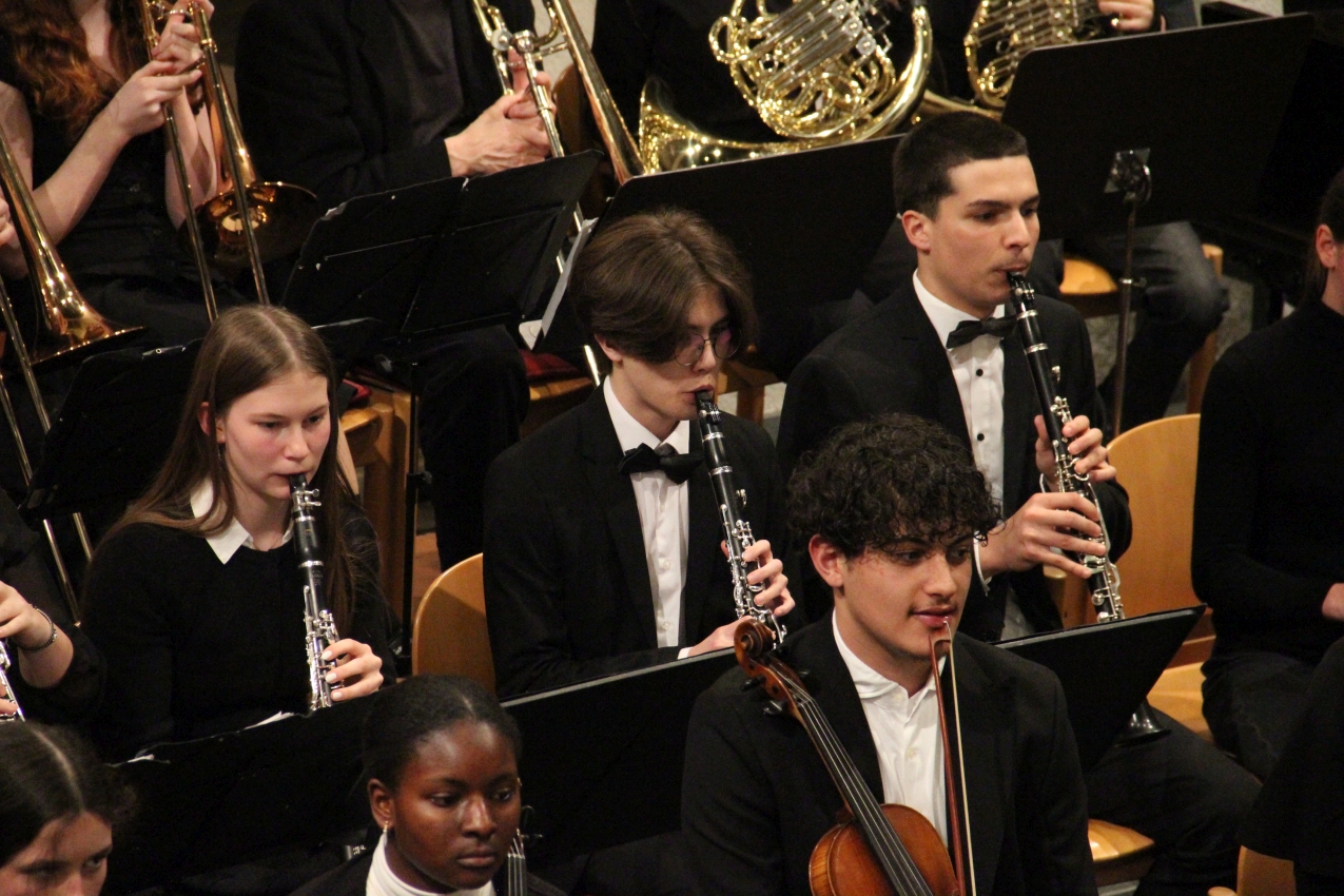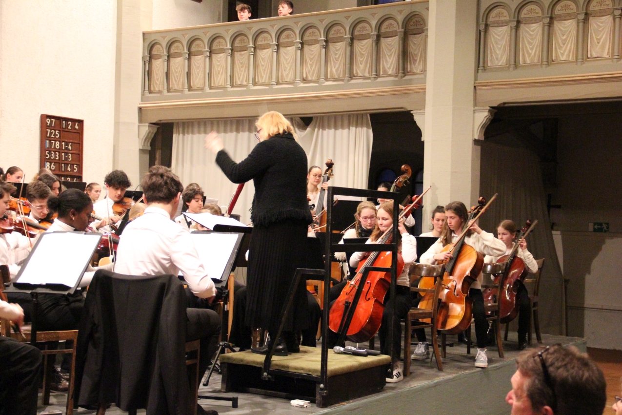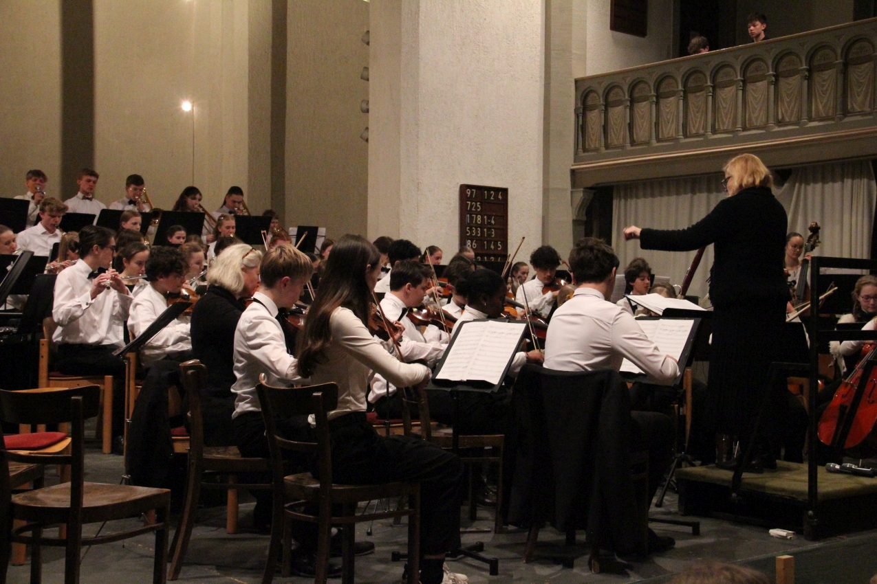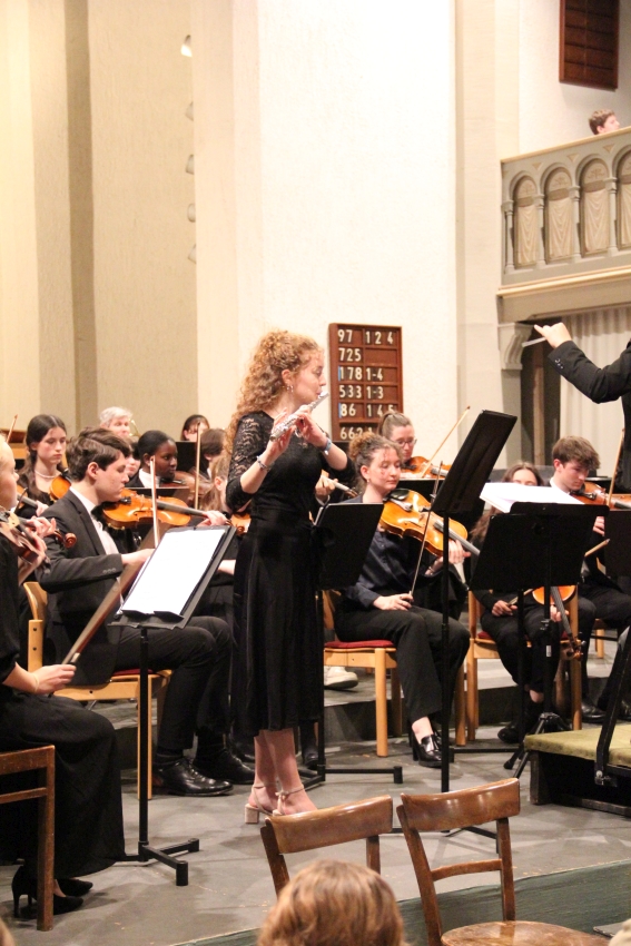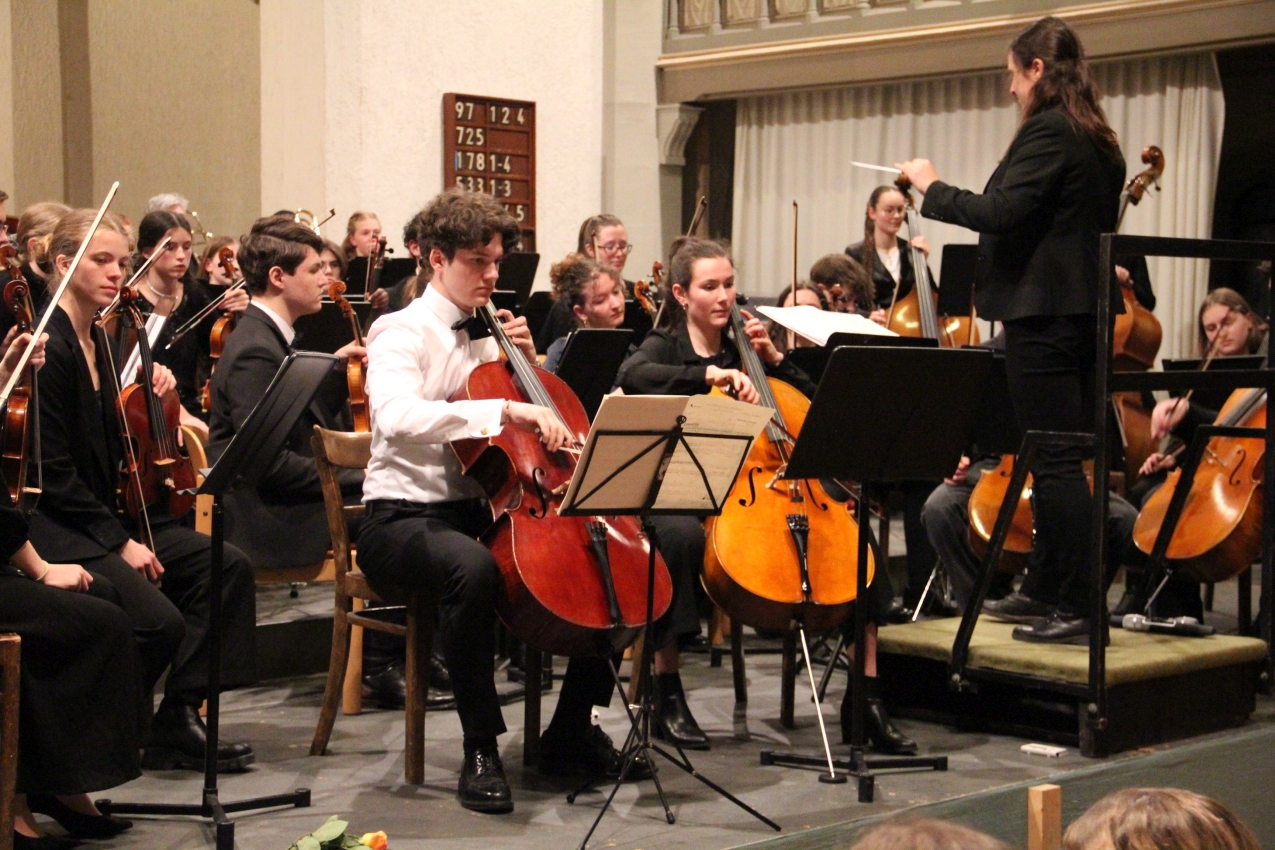Wieder einmal begeisterten unsere Schüler:innen am vergangenen Donnerstag mit einem abwechslungsreichen Programm in der Lutherkirche. Von klassischen Stücken über Musical bis Filmmusik war für jeden Geschmack etwas dabei. Vor allem seien an dieser Stelle unsere angehenden Abiturient:innen erwähnt, die ihr Können solistisch dargeboten haben: Luca Oehlmann, Hannah Lehmann, Philipp Kleiner, Hannah Eden und Laurenz Ruchti demonstrierten ihr Talent an ihren Instrumenten und versetzten das Publikum in tosenden Beifall. Franz Dach betätigte sich außerdem als Arrangeur des Stücks "Tokyo Tune Fanfare" und sorgte für begeisterten Beifall.