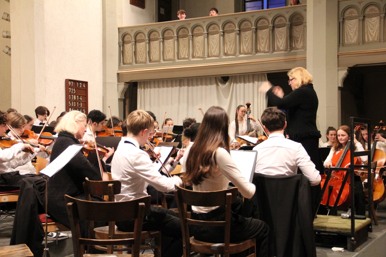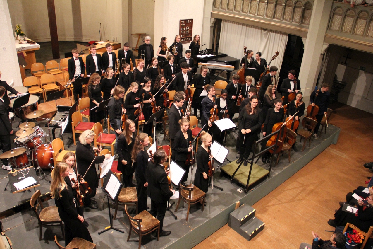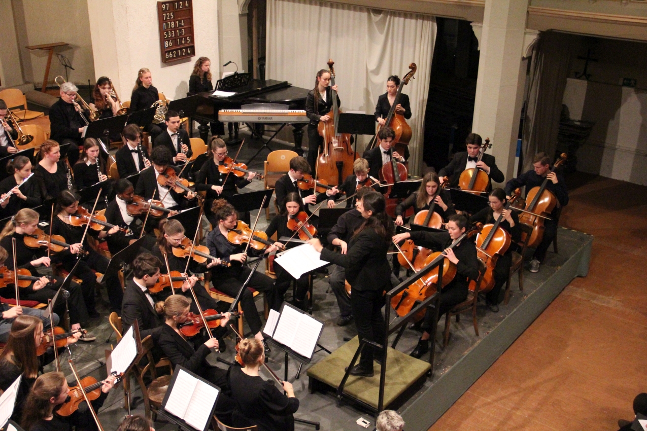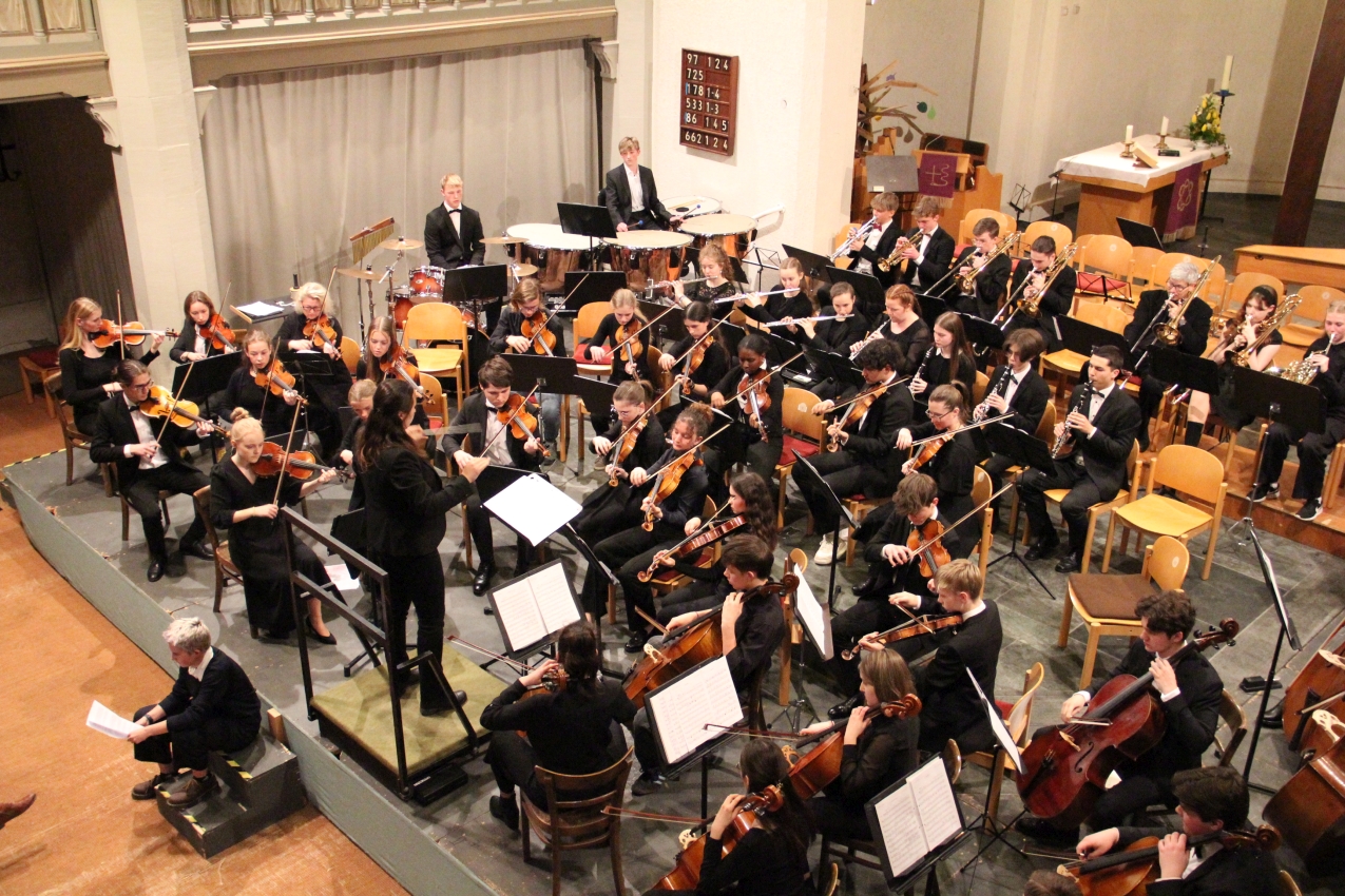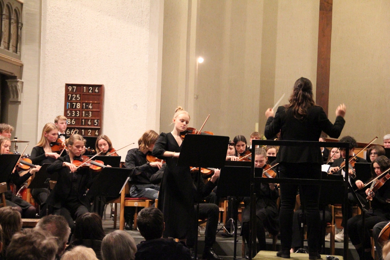 Wieder einmal begeisterten unsere Schüler:innen am vergangenen Donnerstag mit einem abwechslungsreichen Programm in der Lutherkirche. Von klassischen Stücken über Musical bis Filmmusik war für jeden Geschmack etwas dabei. Vor allem seien an dieser Stelle unsere angehenden Abiturient:innen erwähnt, die ihr Können solistisch dargeboten haben: Luca Oehlmann, Hannah Lehmann, Philipp Kleiner, Hannah Eden und Laurenz Ruchti demonstrierten ihr Talent an ihren Instrumenten und versetzten das Publikum in tosenden Beifall. Franz Dach betätigte sich außerdem als Arrangeur des Stücks "Tokyo Tune Fanfare" und sorgte für begeisterten Beifall.