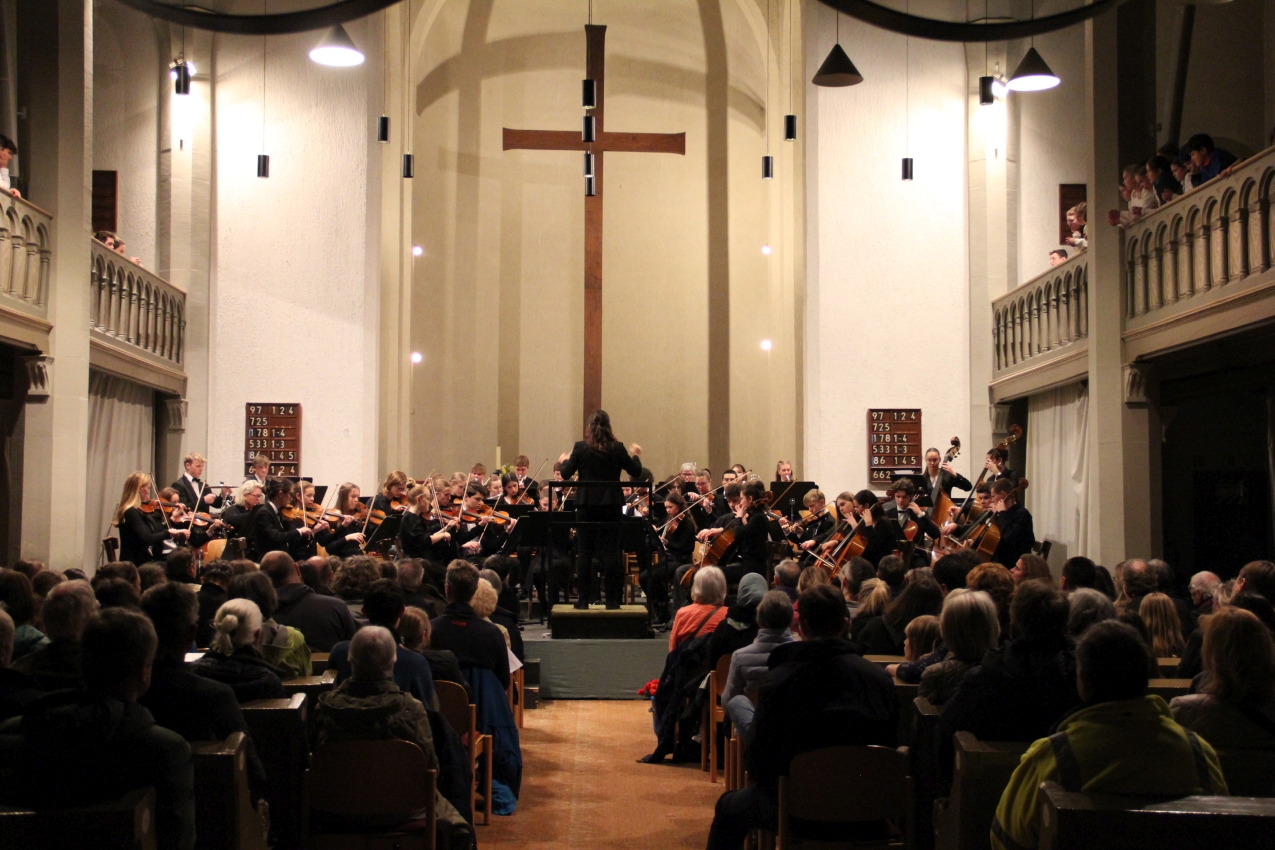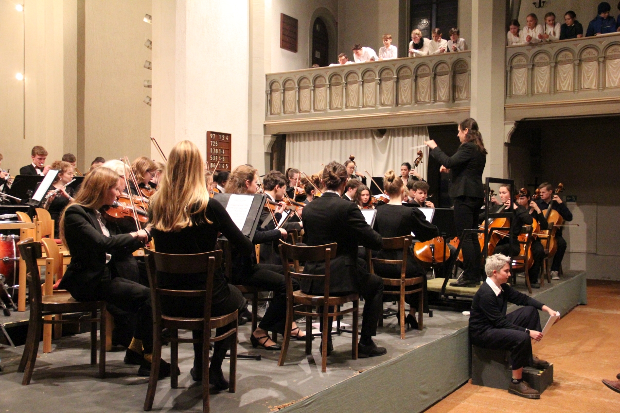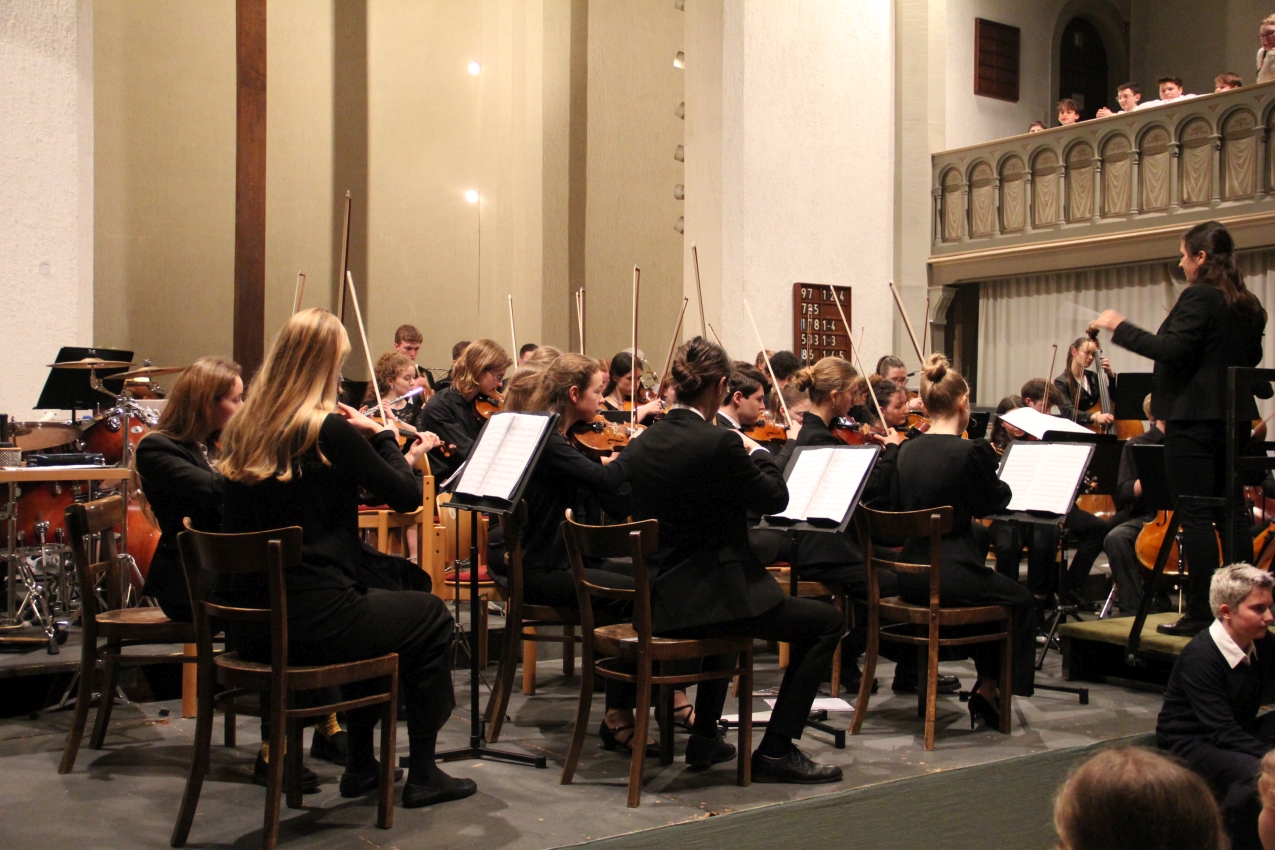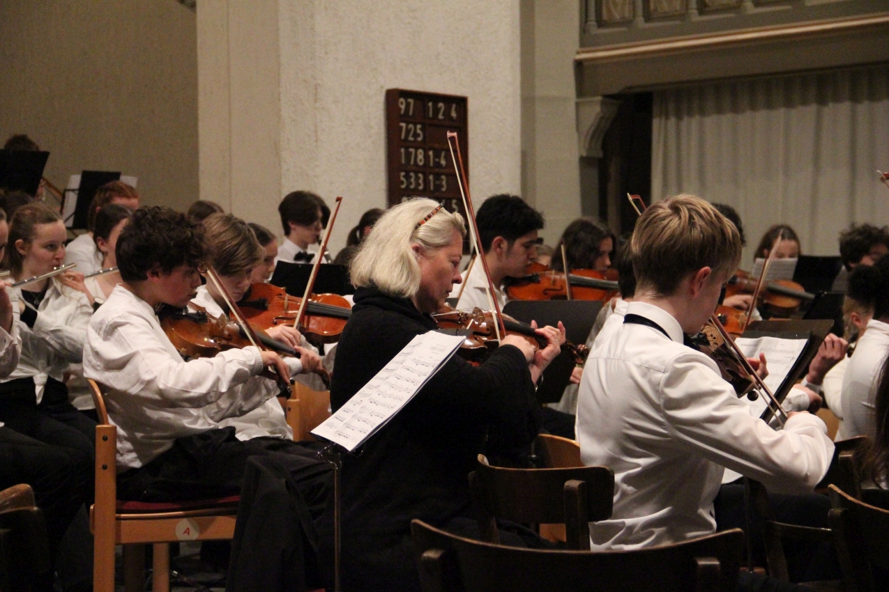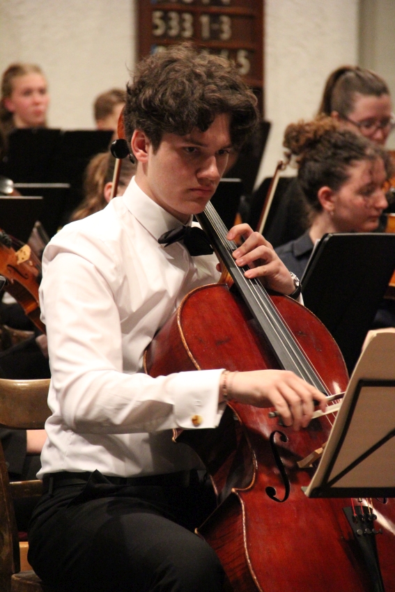 Wieder einmal begeisterten unsere Schüler:innen am vergangenen Donnerstag mit einem abwechslungsreichen Programm in der Lutherkirche. Von klassischen Stücken über Musical bis Filmmusik war für jeden Geschmack etwas dabei. Vor allem seien an dieser Stelle unsere angehenden Abiturient:innen erwähnt, die ihr Können solistisch dargeboten haben: Luca Oehlmann, Hannah Lehmann, Philipp Kleiner, Hannah Eden und Laurenz Ruchti demonstrierten ihr Talent an ihren Instrumenten und versetzten das Publikum in tosenden Beifall. Franz Dach betätigte sich außerdem als Arrangeur des Stücks "Tokyo Tune Fanfare" und sorgte für begeisterten Beifall.