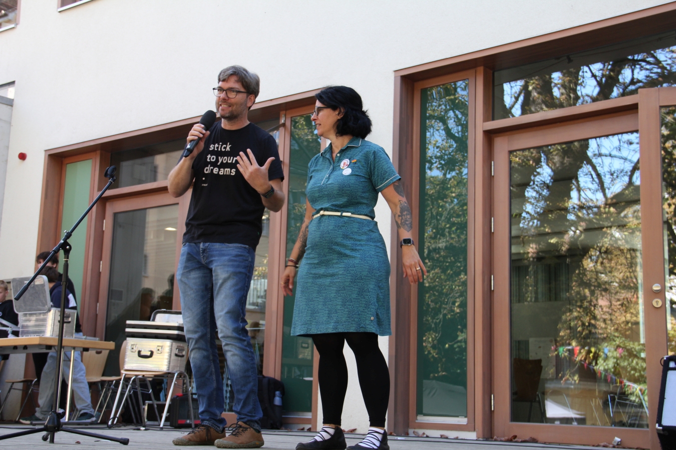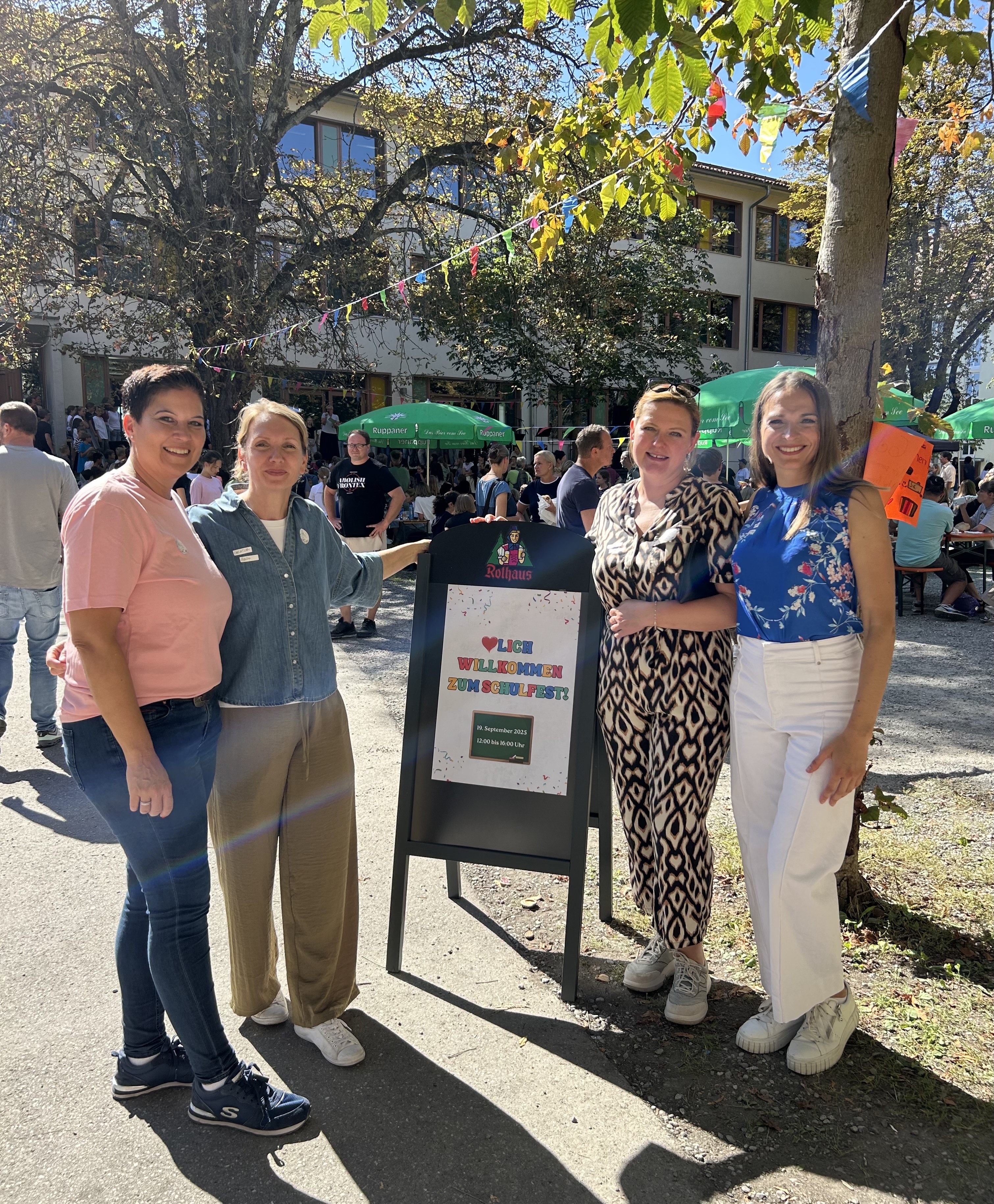 Da ein solches Fest nur durch das Engagement unzähliger Menschen möglich ist, gilt ein großes Dankeschön an alle, die sich um das Fest verdient gemacht haben, allen voran den vier Organisatorinnen aus dem Elternbeirat, Frau Nussbaumer, Frau Hahn, Frau Cöl und Frau vom Kothen sowie den Elternbeiratsvorsitzenden, Herrn Niethammer und Frau Hackenfort und allen Eltern, die an so vielen Stellen mitgeholfen haben. Ebenso geht ein herzlicher Dank an die Kolleg:innen und Schüler:innen, die einige Programmpunkte auf die Beine gestellt haben (insbesondere der Klasse 8c und der SMV), der Technik-AG für den Ton und unserem stellvertretenden Hausmeister, Herrn Götz, für seine Unterstützung!