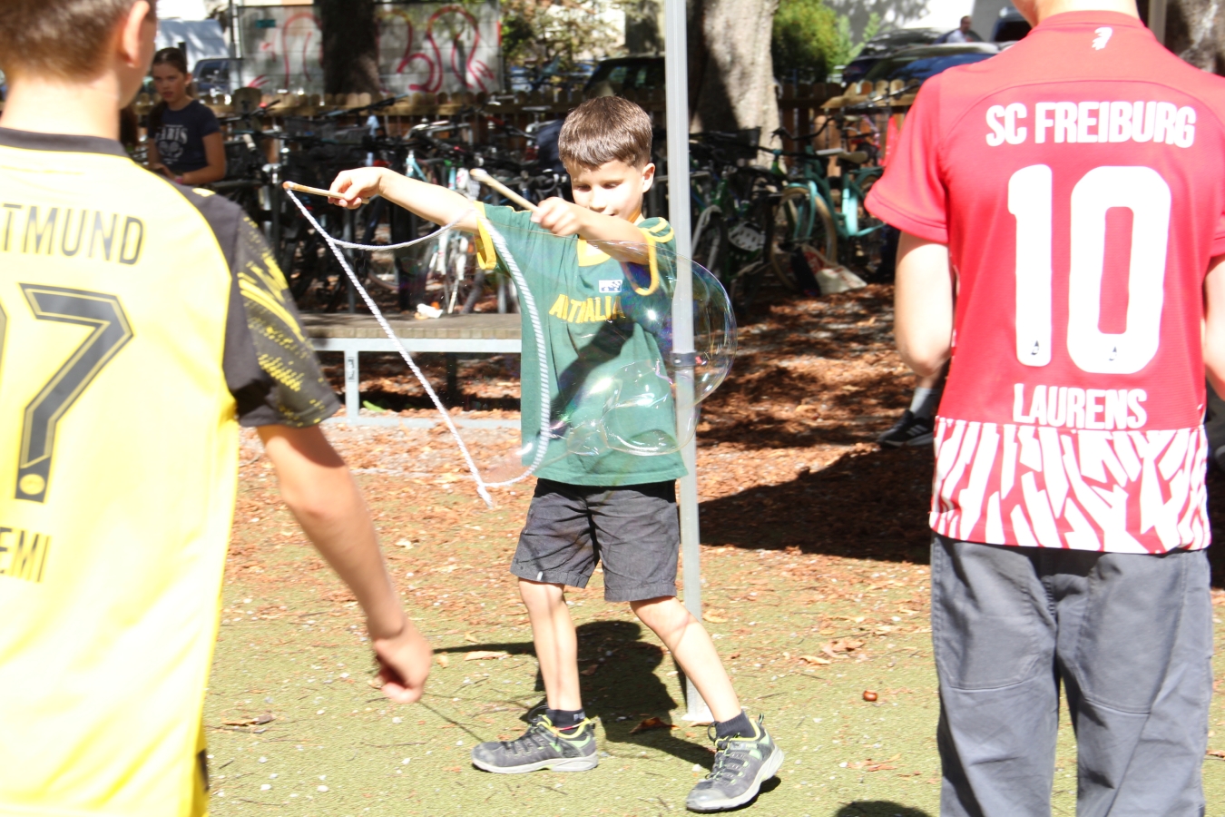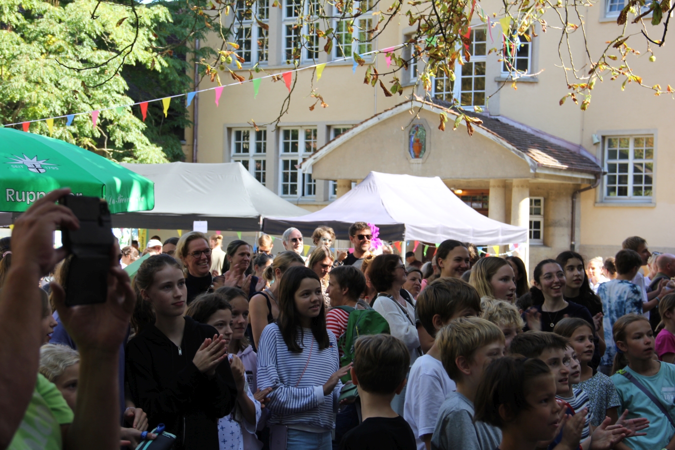 Unter der Mitwirkung von Eltern, Schüler:innen und Lehrkräften wurde ein Programm geboten, bei dem sich die zahlreichen Anwesenden aus unserer Schulgemeinschaft perfekt unterhalten wussten: ob sportlich, musikalisch, dramaturgisch oder kulinarisch - es gab viel zu entdecken und zu genießen! Zahlreiche Spielstationen und ein Flashmob sorgten außerdem dafür, dass alle aktiv werden konnten, die Lust auf Spaß und Bewegung hatten. Ein toller Auftakt für dieses Schuljahr!