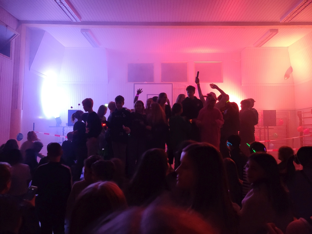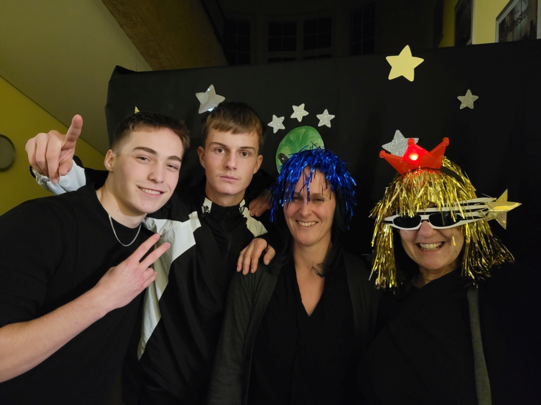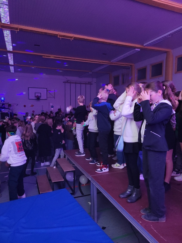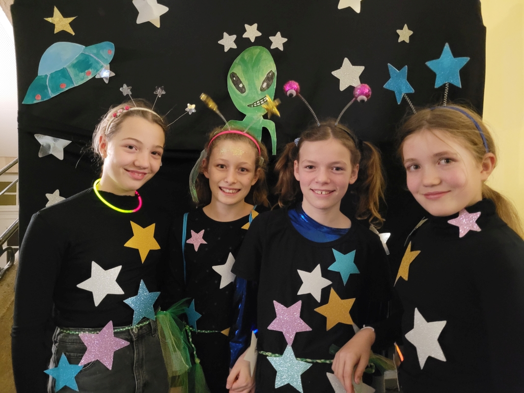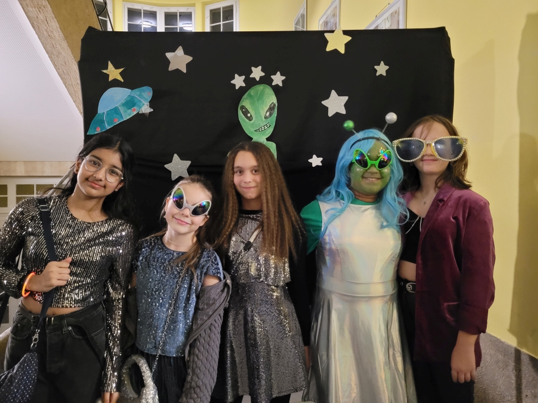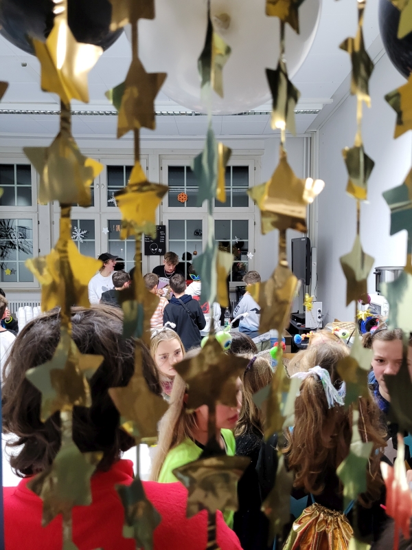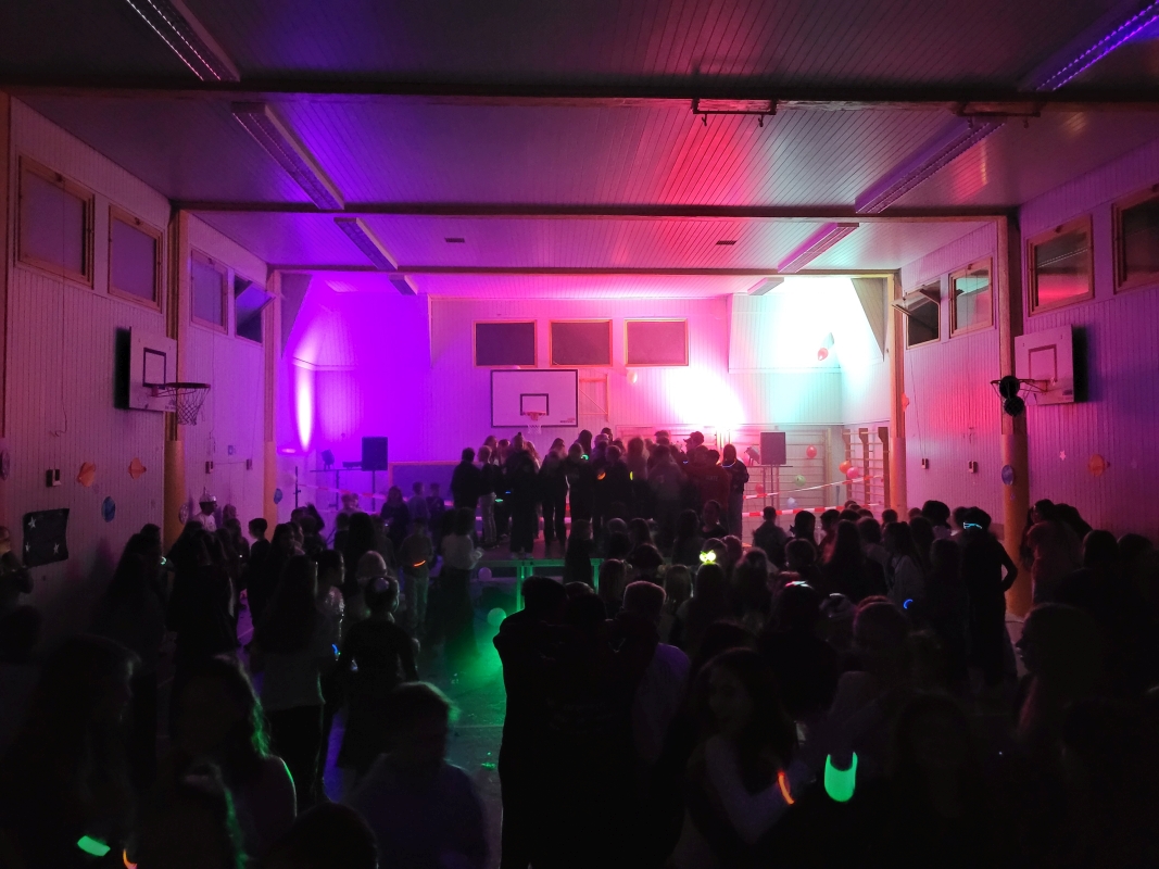 Am vergangenen Freitag fand unsere Unterstufen-Disco unter dem Motto "SPACE" statt. So tummelten sich ab 18.00 Uhr zahlreiche Aliens mit blinkenden Augen, grünen Gesichtern und glitzernden Gewändern zu den Beats der Technik-AG in der Ellenriederhalle.