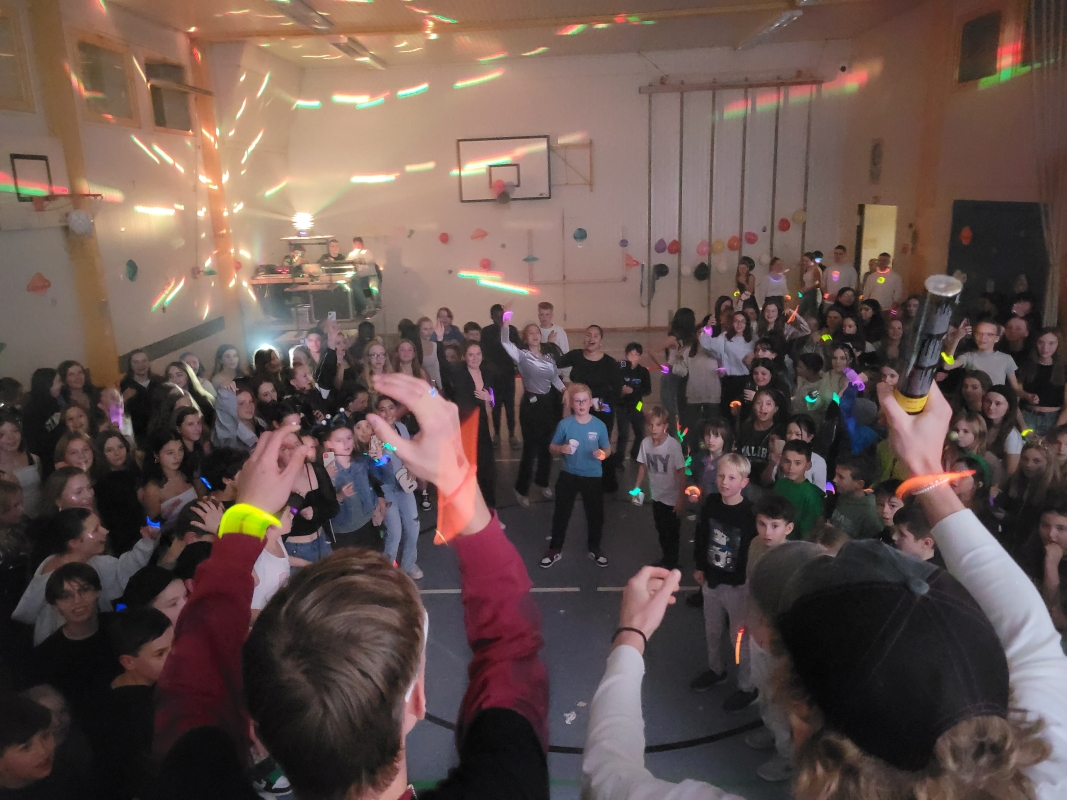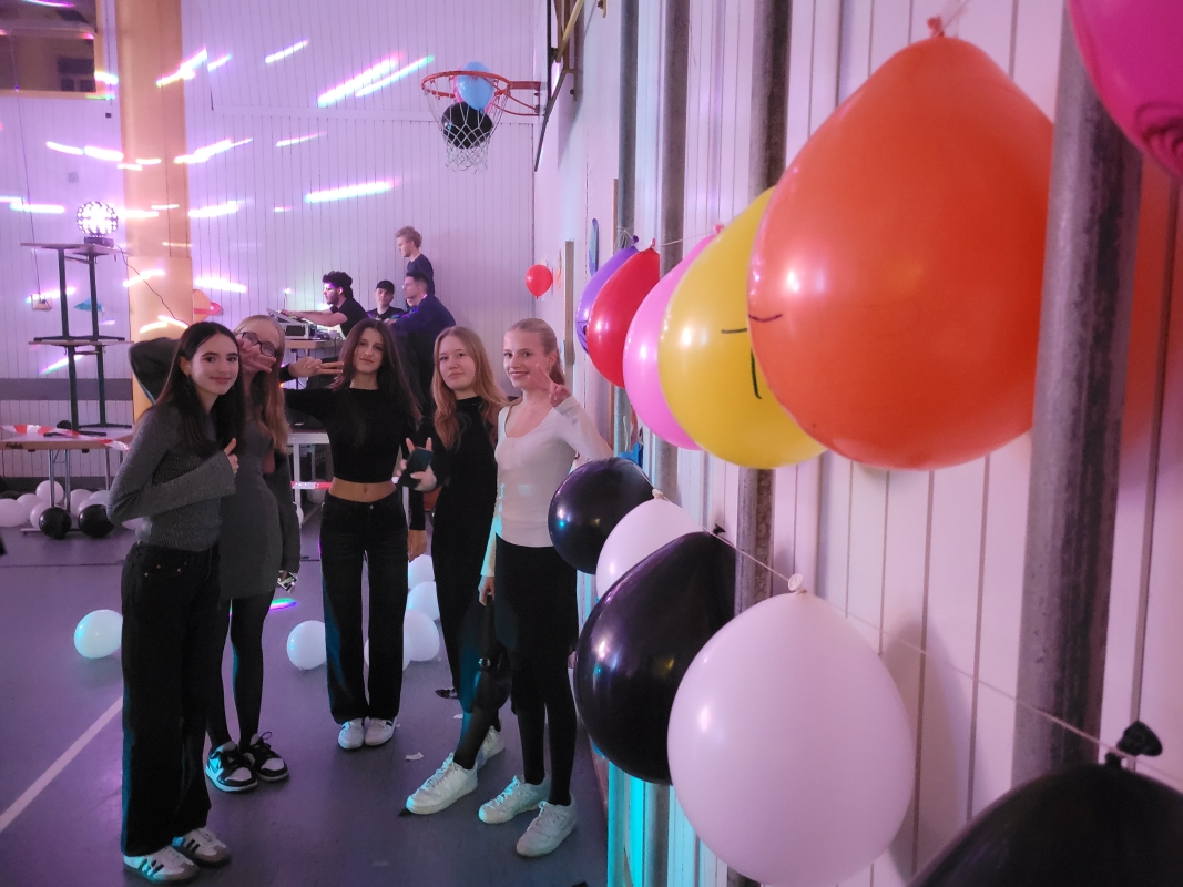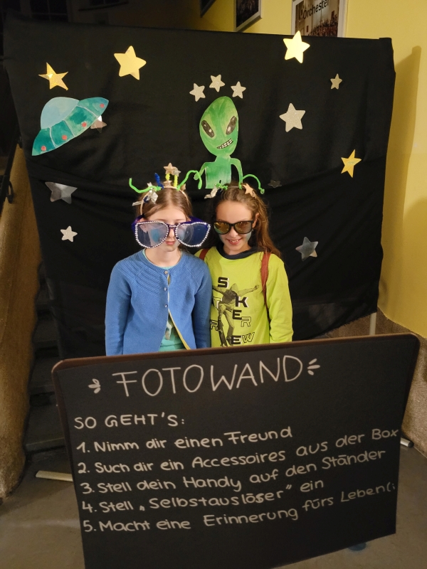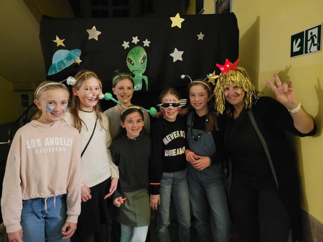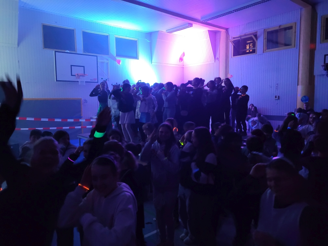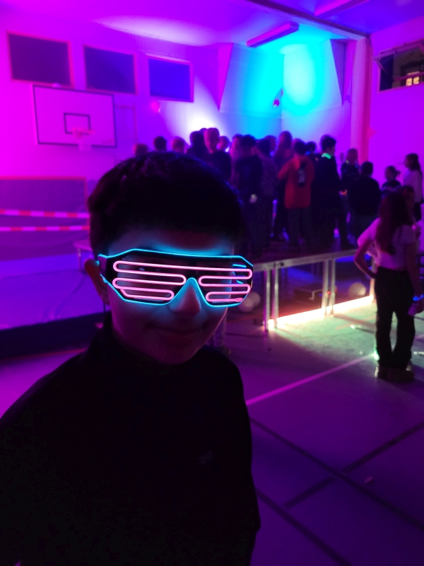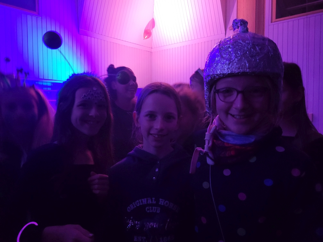 Am vergangenen Freitag fand unsere Unterstufen-Disco unter dem Motto "SPACE" statt. So tummelten sich ab 18.00 Uhr zahlreiche Aliens mit blinkenden Augen, grünen Gesichtern und glitzernden Gewändern zu den Beats der Technik-AG in der Ellenriederhalle.
