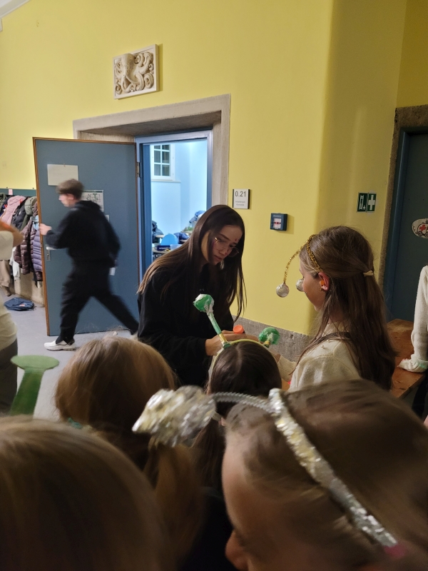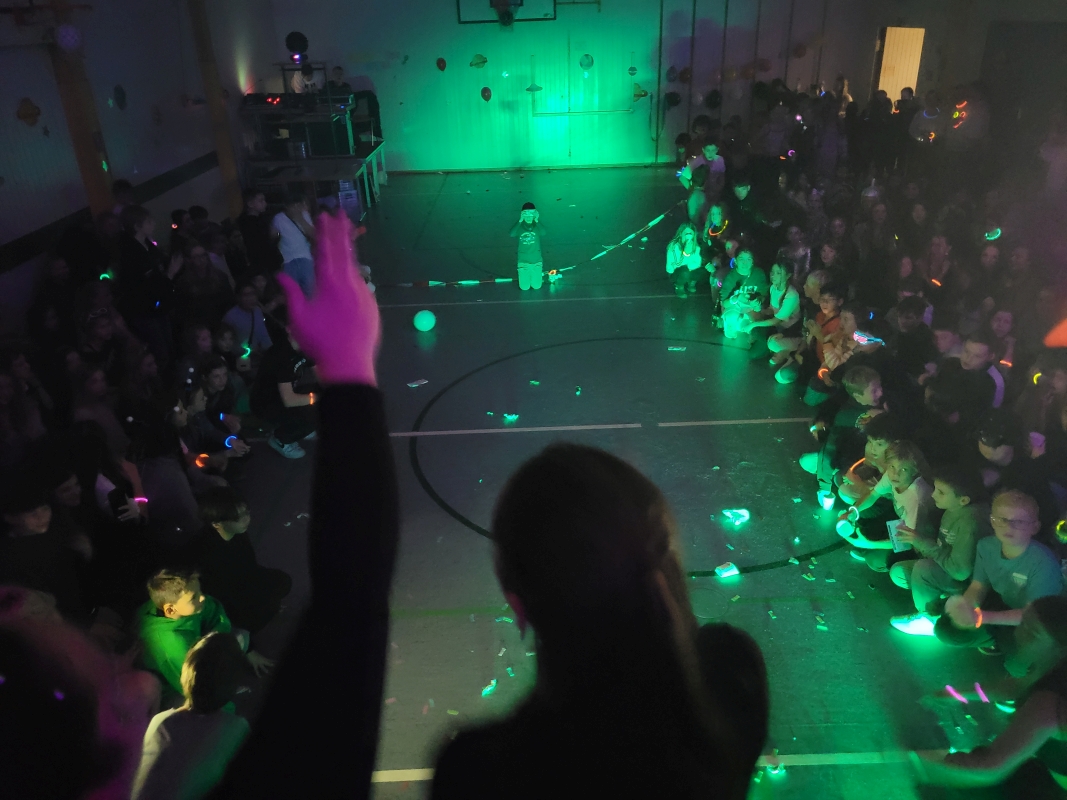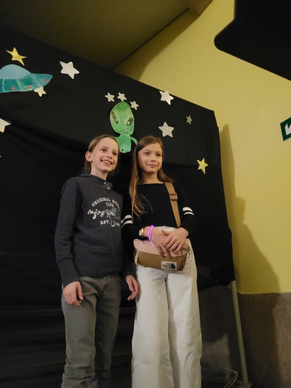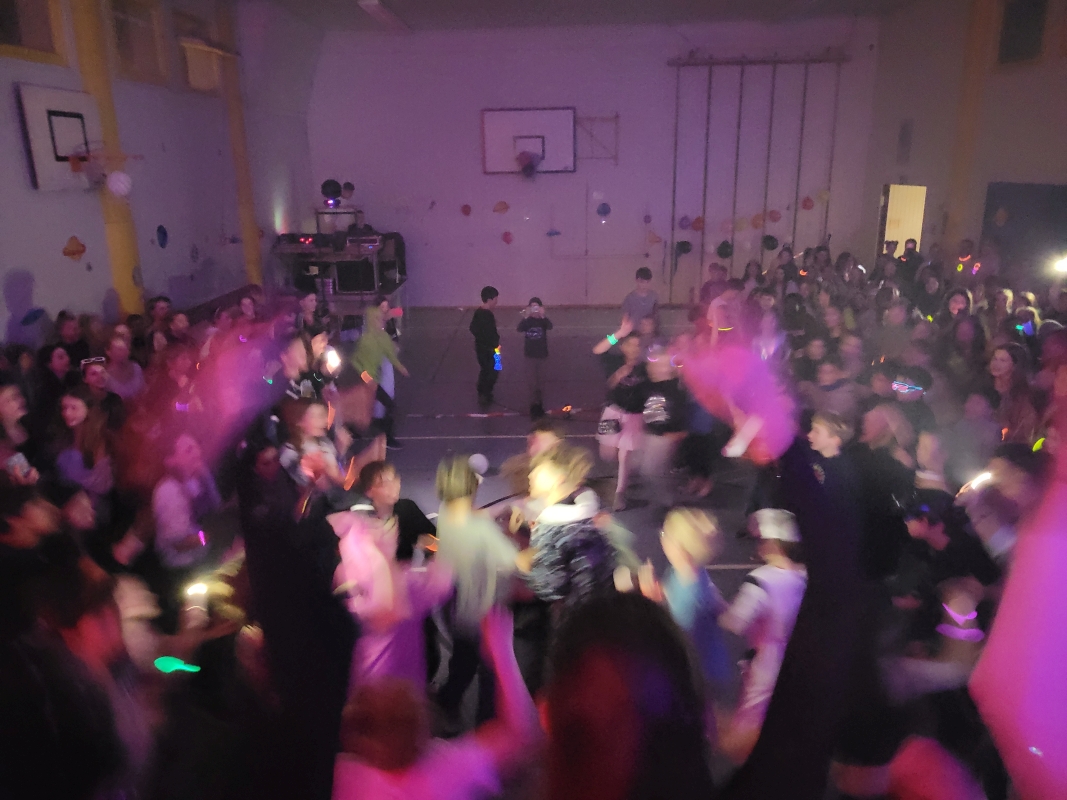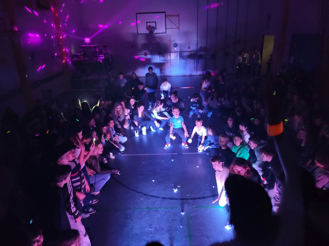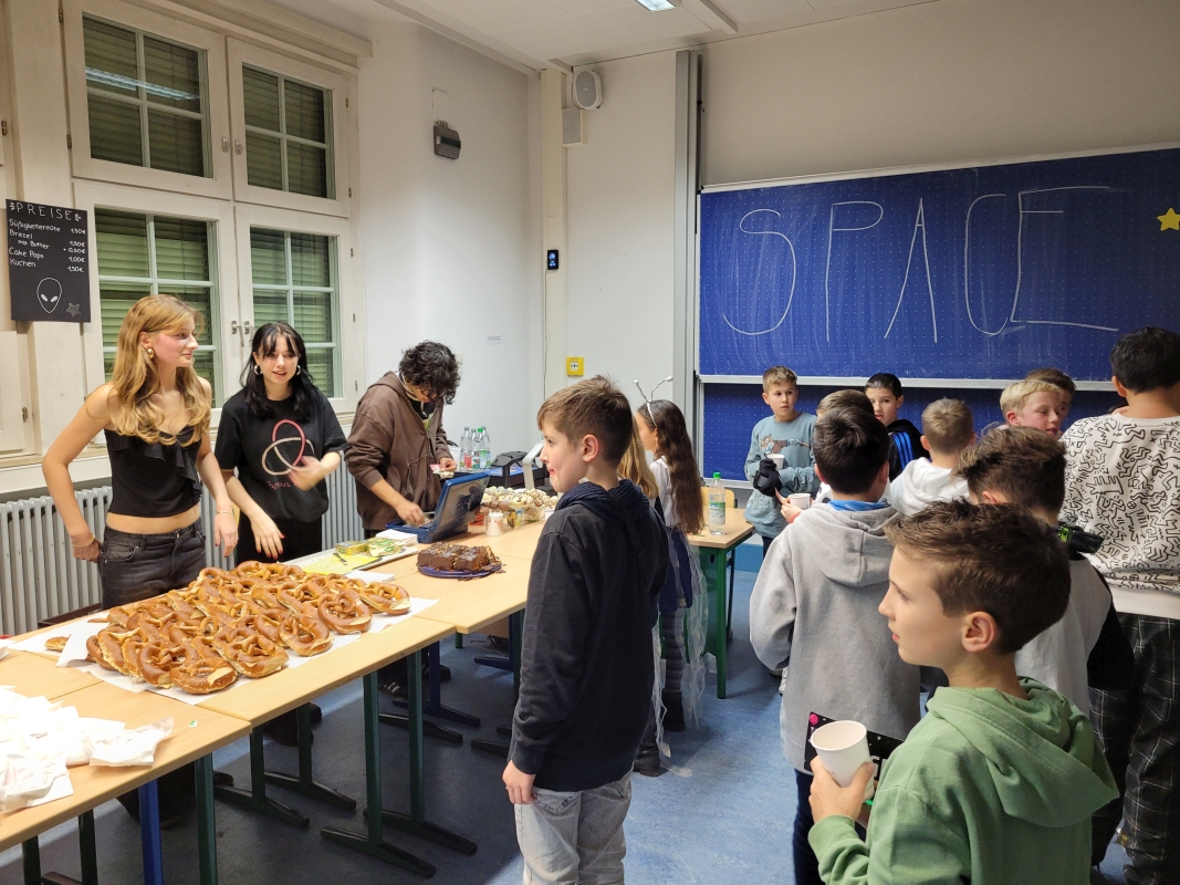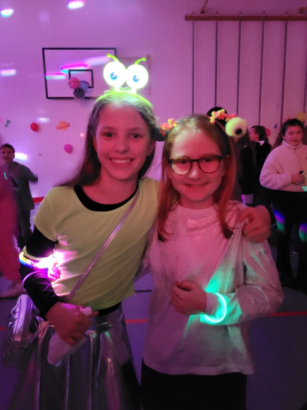 Am vergangenen Freitag fand unsere Unterstufen-Disco unter dem Motto "SPACE" statt. So tummelten sich ab 18.00 Uhr zahlreiche Aliens mit blinkenden Augen, grünen Gesichtern und glitzernden Gewändern zu den Beats der Technik-AG in der Ellenriederhalle.